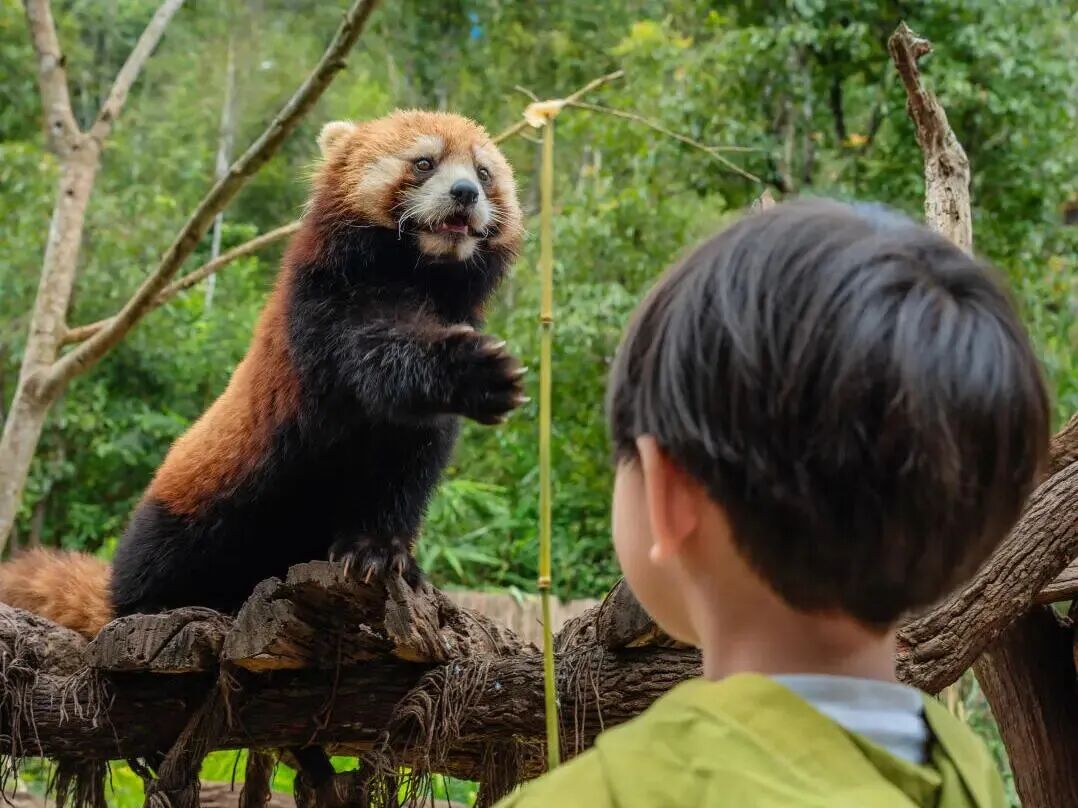 小熊猫—— 是这里的明星“自由职业者”。热情的“森林导览员”(工作人员)会帮你找到它们藏身的位置,教你如何安全地递上一块苹果。当它用灵巧的前爪接过食物,或用湿漉漉的鼻尖好奇触碰你的掌心时,你会觉得整个世界都安静了下来。