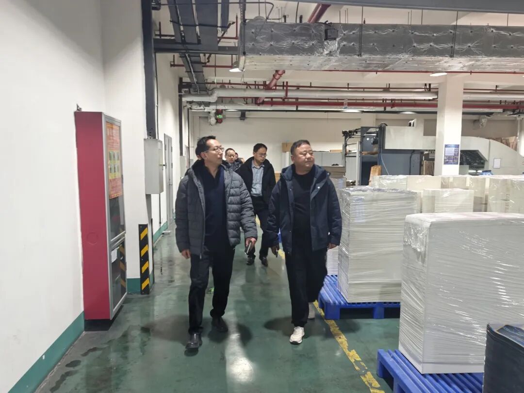 一行首先前往会长企业 —— 青岛东彩包装科技有限公司,深入生产车间实地察看生产流程、技术设备与产品工艺,详细了解了企业在技术创新、产品研发及产业布局等方面的具体情况与核心优势。