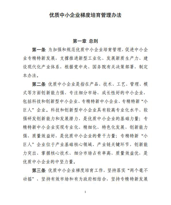 为进一步加强优质中小企业梯度培育工作,促进中小企业专精特新发展,现将《优质中小企业梯度培育管理办法》印发给你们,请认真遵照执行。