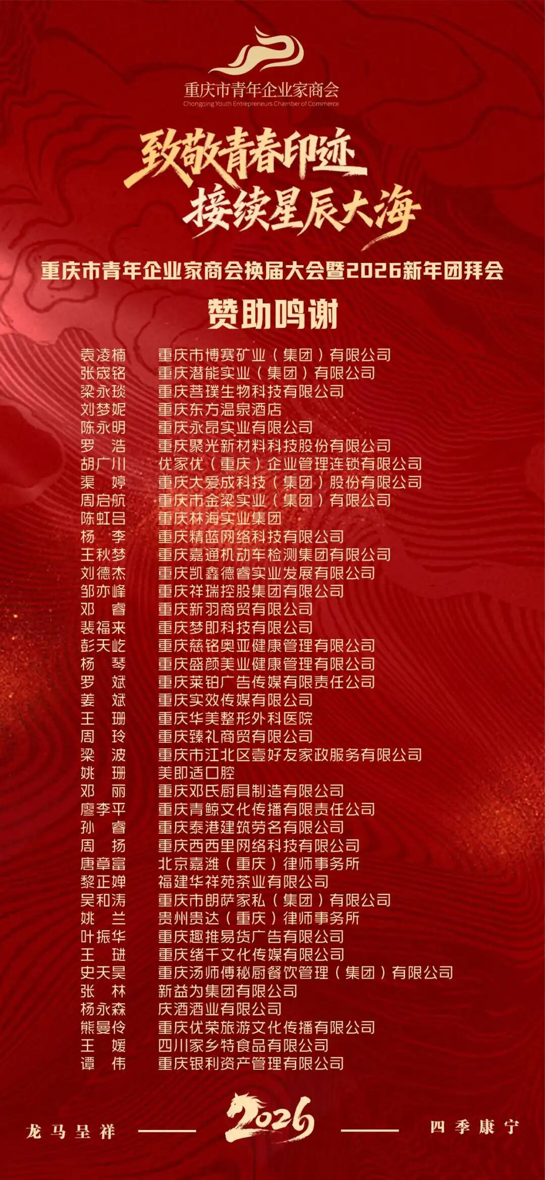 “致敬青春印迹 接续星辰大海” 重庆市青年企业家商会换届大会暨2026新年团拜会圆满举行