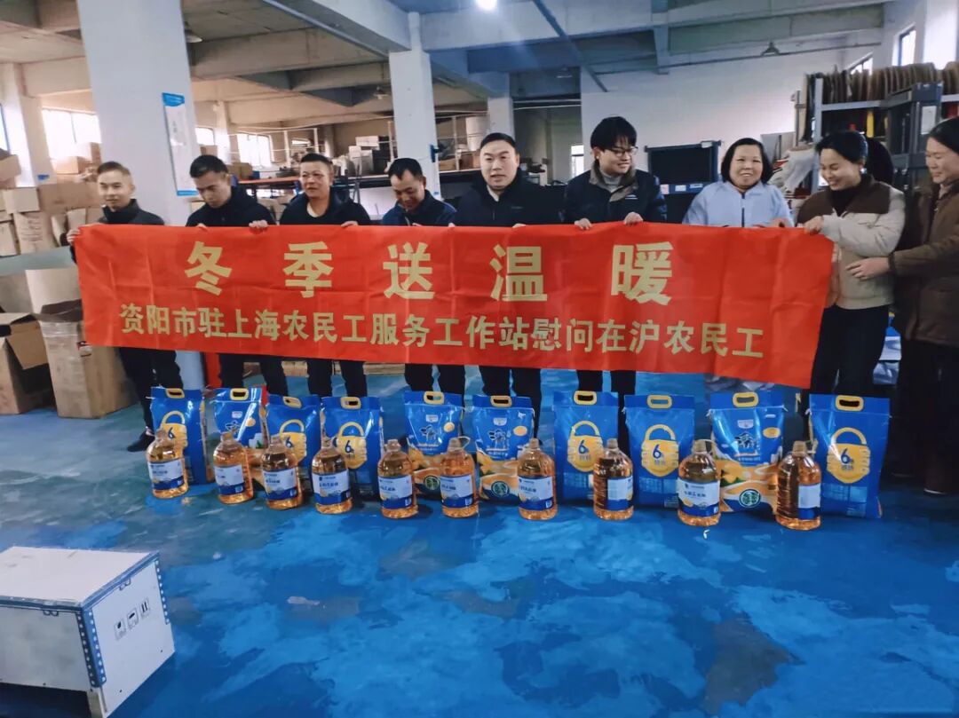 岁末寒冬送温情,浓浓关怀暖人心。1月23日,资阳市驻上海农民工服务工作站与上海市资阳商会一行,在商会党支部书记兼执行会长唐作超、商会副会长及资阳市驻上海农民工工作站副站长费进桥的带领下,前往会员单位上海静赢机电科技有限公司、上海斯颐电气有限公司,亲切看望慰问在沪务工的资阳籍农民工代表,送上来自家乡的关怀与新春的祝福。