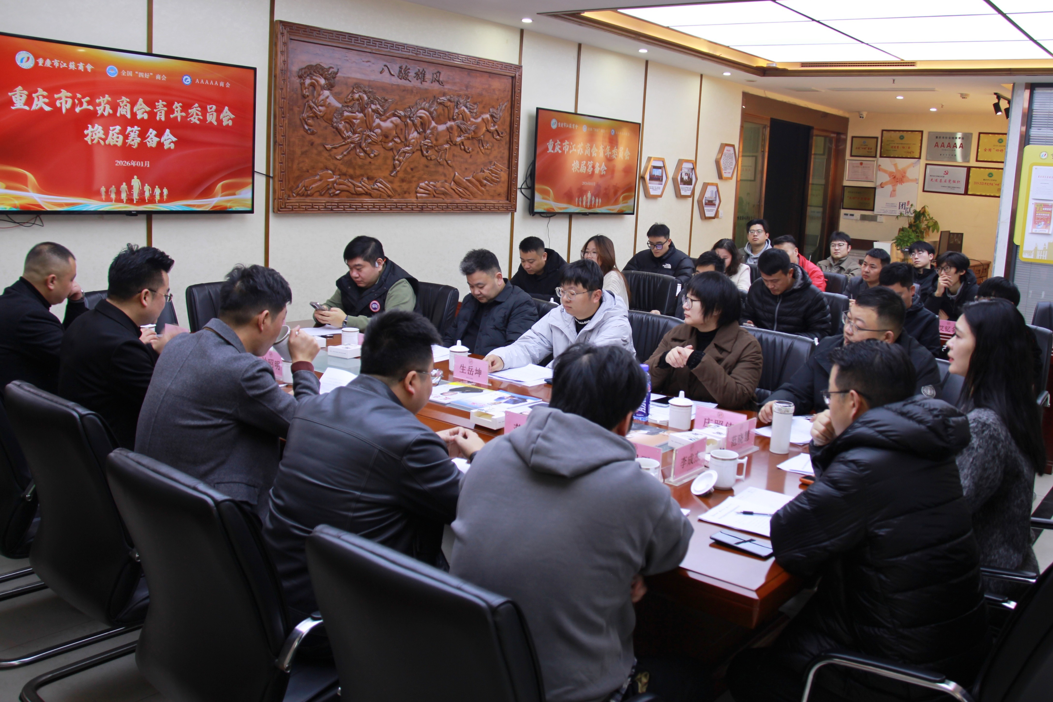 2026年1月18日上午,重庆市江苏商会青年委员会换届大会筹备会于重庆市江苏商会办公室顺利召开。商会常务副会长陈江荣,副会长沙昭明、李昊、蒋朋建,副监事长金明雪等二十余名青年企业家和苏籍在渝就读大学生代表共同参与了此次会议,会议由副会长沙昭明主持。