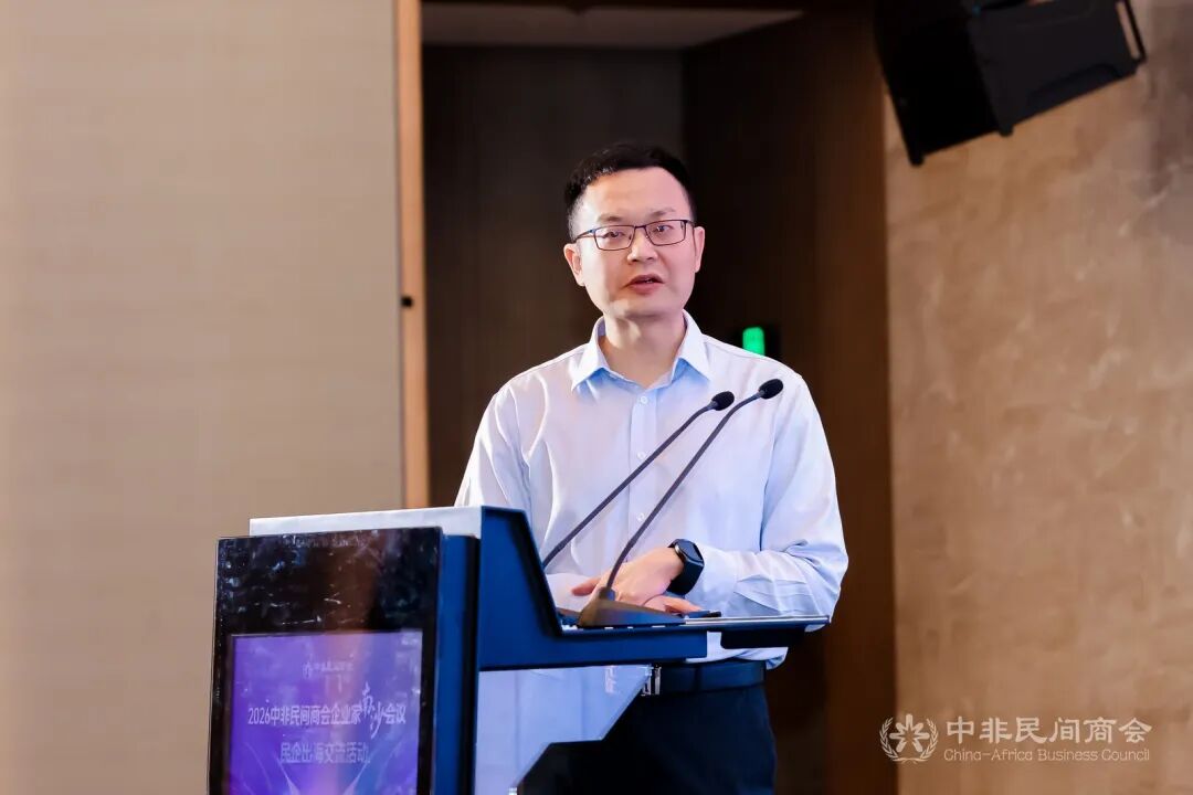成果展示与经验分享环节,来自不同行业领域的企业家和专家。威海华坦供应链董事长王香云分享了东非商贸物流中心的最新进展;埃塞俄比亚爱菲医院董事长王剑华讲述了中资民营医疗机构显著提升当地医疗水平、服务民生的责任与担当;中地海外集团副董事长纪为民介绍了在非深耕三十年的实践与提示;科达制造李擎分享了企业市场拓展策略与本地化运营经验;国际机构专家惠红林则从善用国际金融服务角度,为民营企业出海融资提供了专业建议。企业家和专家的分享务实、智慧且有针对性,为现场嘉宾带来了宝贵的借鉴与启发。