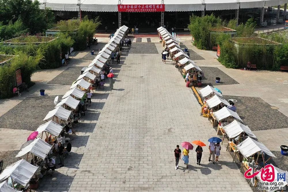 8月8日下午,直播间外,西昌市火把广场现场展销100余类“大凉山”优质特色农产品。中国网记者 董宁摄影