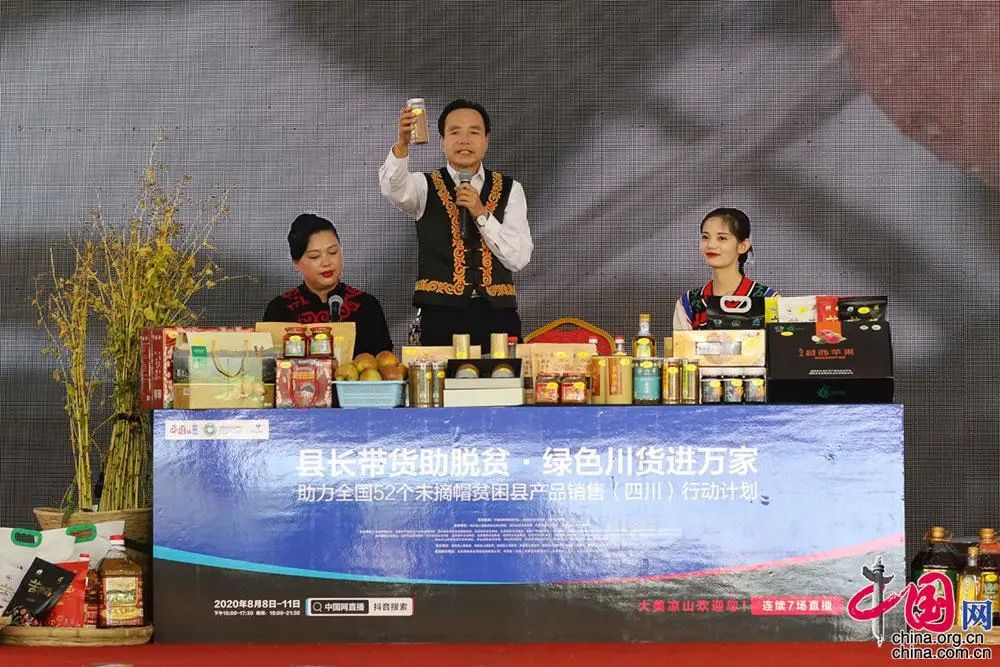8月11日下午,由中国互联网新闻中心(中国网)、北京四川企业商会、森林乡村商城等单位联合发起的“县长带货助脱贫·绿色川货进万家”县长直播带货活动第7场直播圆满结束。从8月8日至11日,来自凉山州越西县、昭觉县、布拖县、金阳县、喜德县、美姑县、普格县7个未摘帽贫困县的县长或县委书记,走进中国网直播间。百余件凉山特色农产品通过中国网直播走进广大网友购物车。百万网友通过中国网直播了解凉山民族文化,购买了心仪的产品,奉献了自己的爱心。