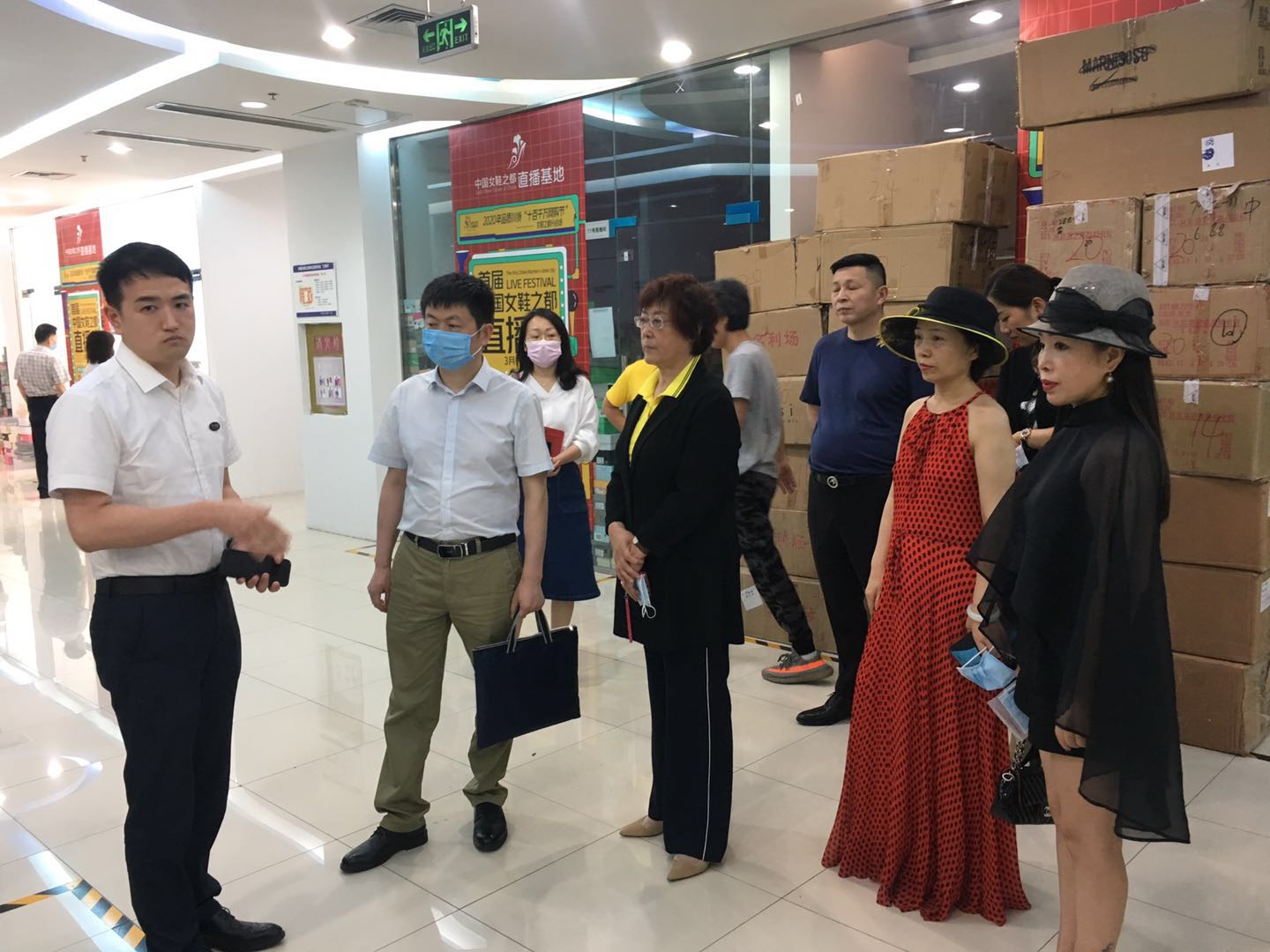 2020年6月2日下午,应四川省鞋业协会邀请由成都市经信局时尚产业处处长张文军。成都市经信局巡视员张保国、市经信局时尚产业处主任科员吴 松 ;成都时尚产业协会会长江欣芸、 副会长刘琼英、监事长徐晓勇 、秘书长肖舒馨、理事周欢等在经信局时尚产业处处长张文军带领下参观了女鞋之都直播基地。