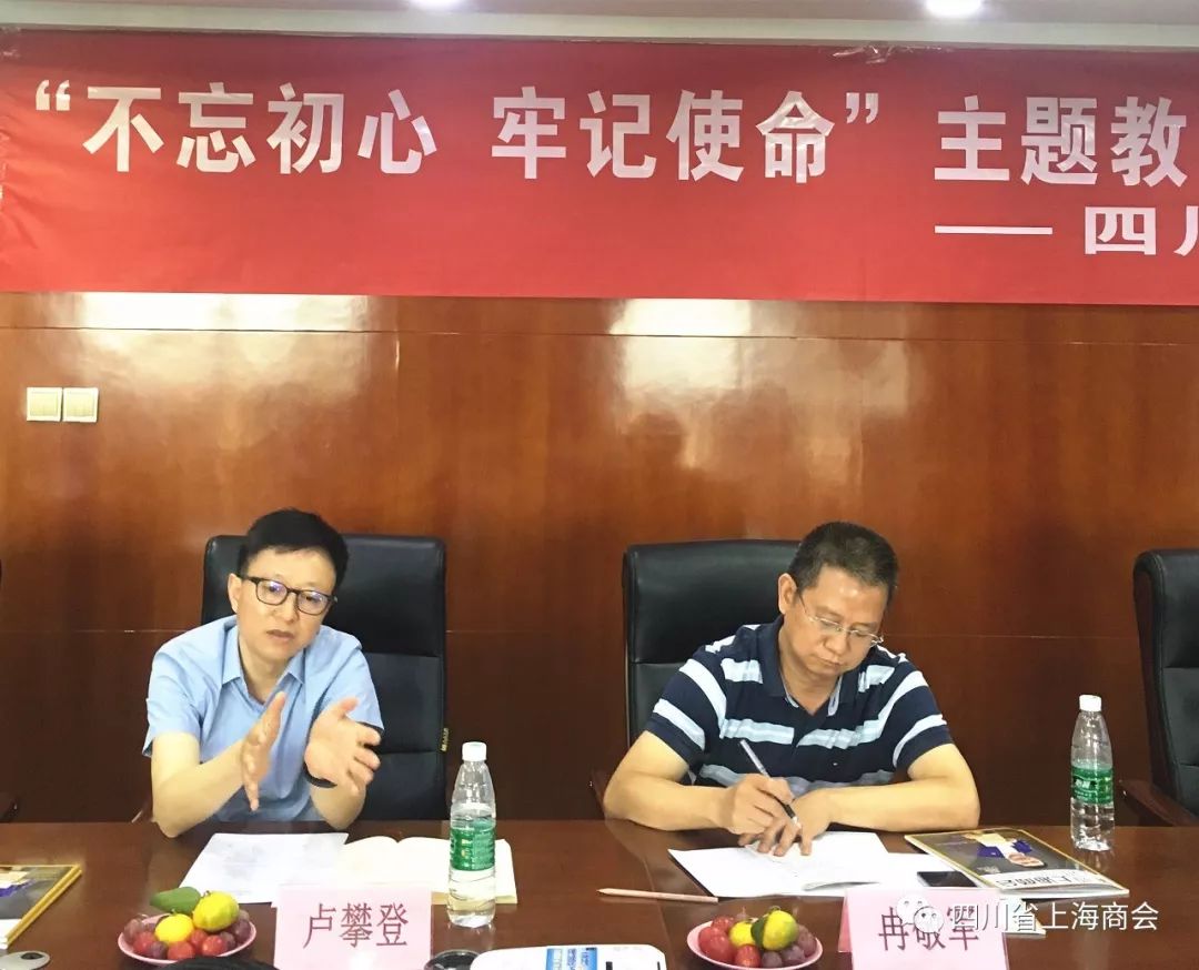 卢攀登书记简要介绍了中央、省委关于开展“不忘初心、牢记使命”主题教育的部署安排,详细讲解了中央开展主题教育的根本任务、总要求和目标,并针对社会组织党组织如何开展“不忘初心,牢记使命”主题教育活动,提出以下几点建议:一是把学习习近平新时代中国特色社会主义思想作为主题教育的首要任务;二是把参与驻地社会经济发展作为主题教育的主要目的;三是把行业自律自主管理作为商会管理的重要职责;四是把党组织建设作为加强领导监管的根本保障。希望四川省上海商会继续发扬“国企引领,民企有为”的良好态势,继续按照党中央和两地党委政府的统一部署,紧密结合社会组织的实际,以“党建引领,经济发展”的工作成效体现出主题教育效果。