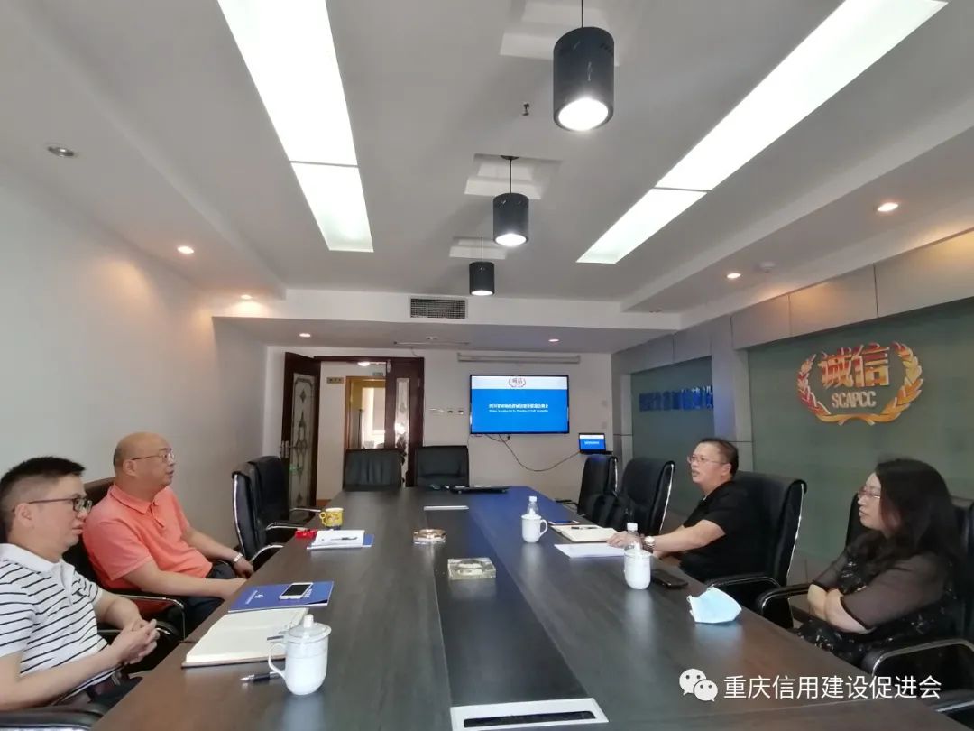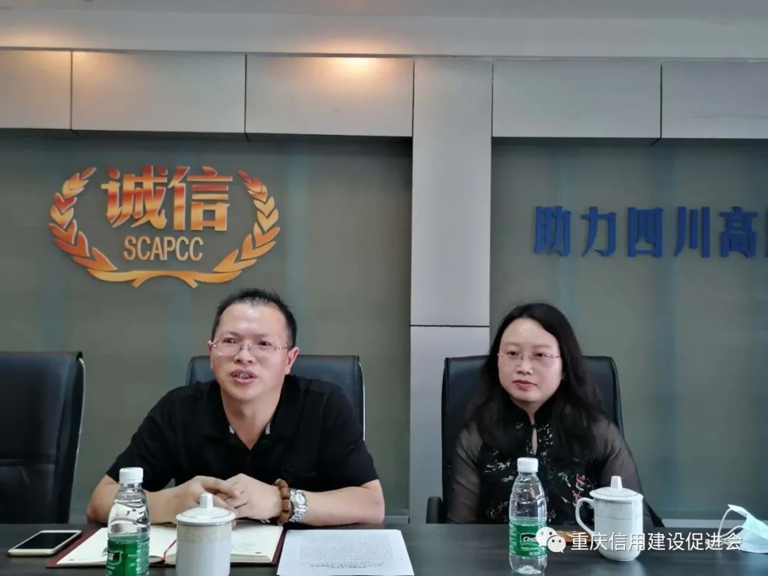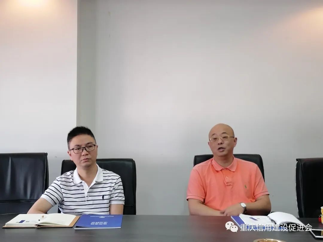 重庆市非公有制企业信用建设促进会支部书记、执行副会长兼秘书长蒋维胜(左)作情况介绍