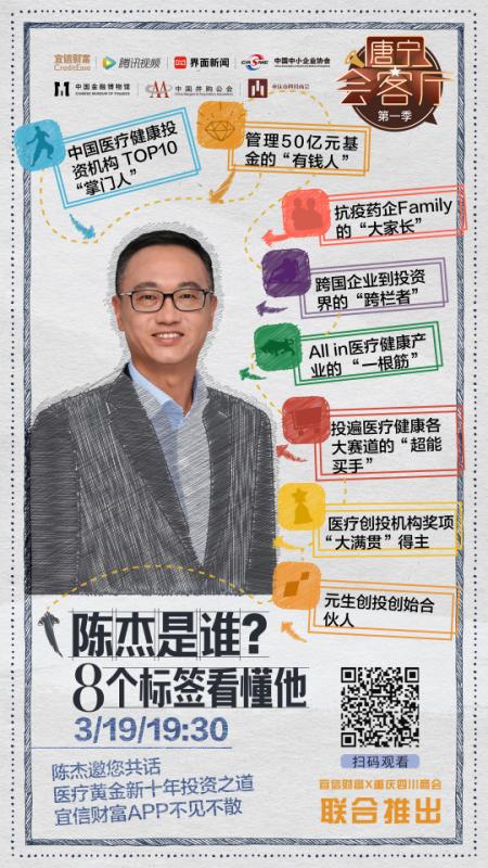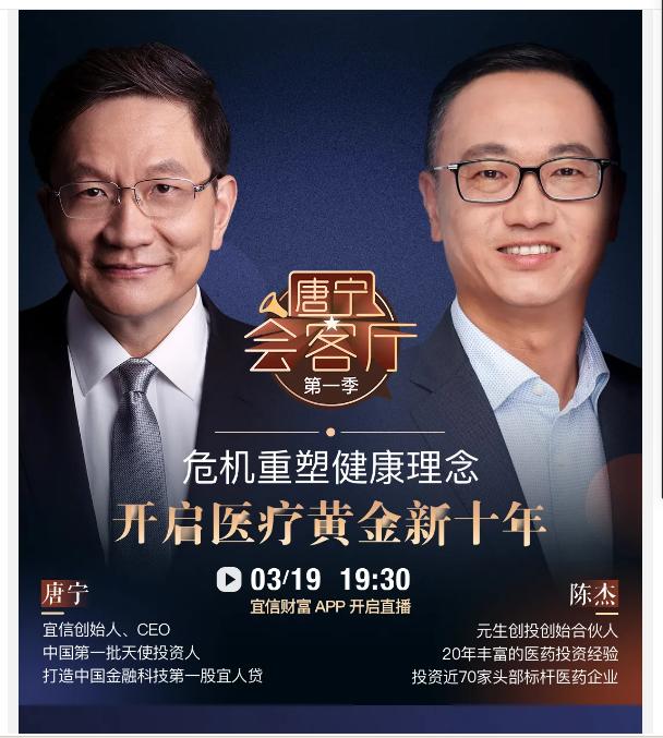 今晚19:30,《唐宁会客厅》第3期迎来重磅嘉宾——元生创投创始合伙人陈杰,他将和唐宁就“危机重塑健康理念,开启医疗黄金新十年”展开对话,欢迎扫码下图二维码锁定直播!