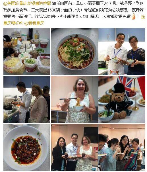 第一家走向伦敦的重庆小面——普州面。公司创始人周正波及其团队分别于2015、2016年参加英国伦敦第一届、第二届中华美食节。本着精益求精的理念、对食物的全心全意的态度当然还有顺畅的英语交流,普州面在伦敦一战成名,赢得了无数海内外食客的青睐和追捧。并且也引起了海内外媒体的关注和报道——重庆小伙英国伦敦卖面条,因此在这个意义上说,普州面是第一家走向伦敦的重庆小面名副其实。