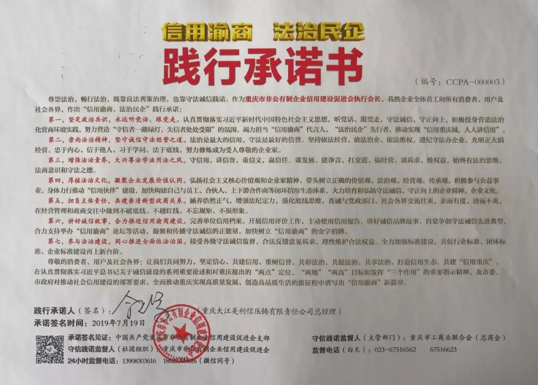 “信用渝商”践行单位宣传[2]:美利信压铸