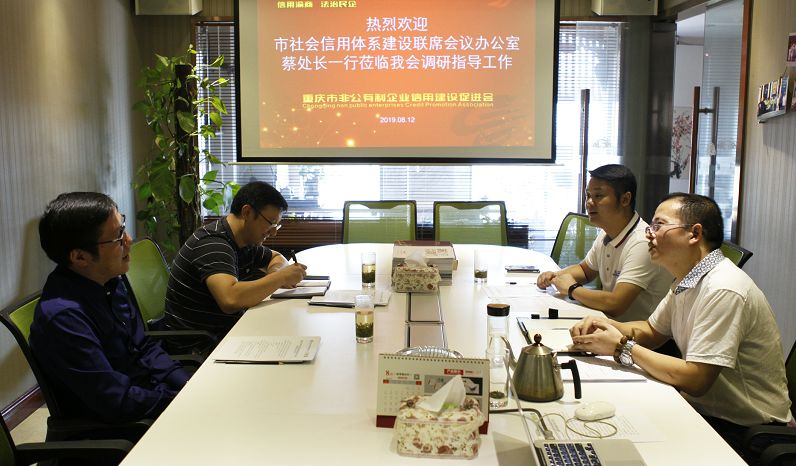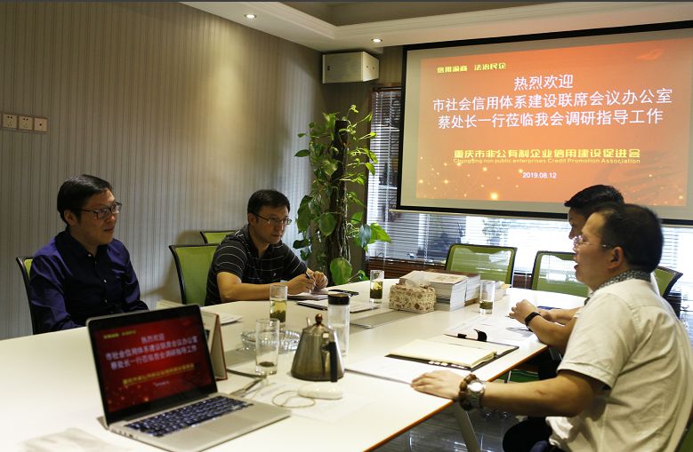 8月12日下午,市社会信用体系建设联席会议办公室受我会邀请,市信用中心社会信用处处长蔡洪波、市发展改革委资金处干部张峰到我会调研指导工作。