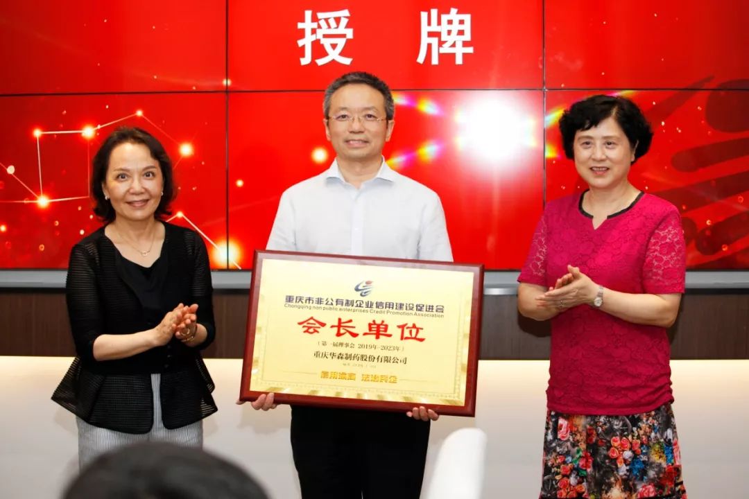 再接着,促进会举行了庄重的授牌和聘书颁发仪式。市政府原副市长童小平和市工商联党组副书记、副主席张莉为促进会会长单位授牌,促进会会长、重庆华森制药股份有限公司党委书记、董事长游洪涛接牌。