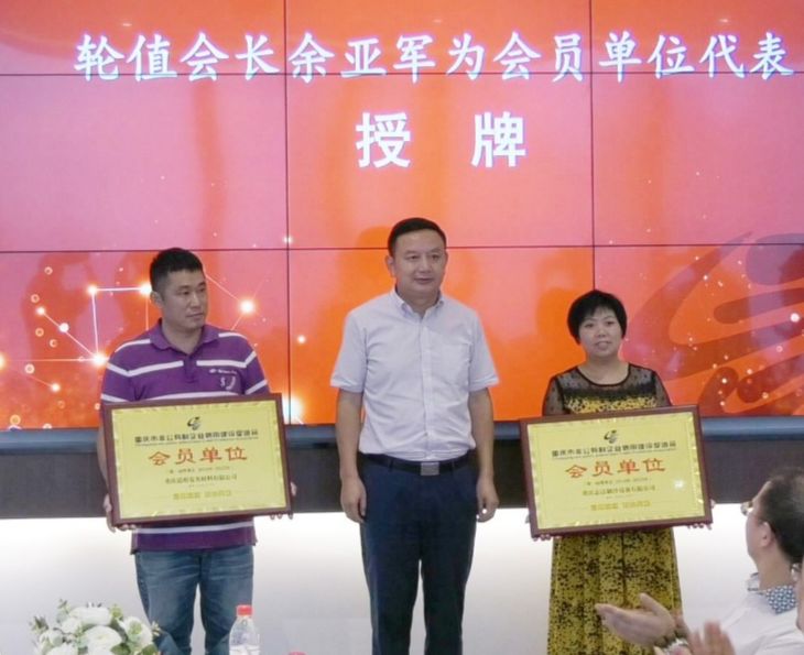 市政府原副市长,市工商联党组副书记、副主席张莉和党组成员、副主席王进为促进会副会长授牌,促进会副会长、新红阳投资控股有限责任公司总经理朱玉伦,副会长、重庆拉玛印象商贸有限公司董事长郭国峰,副会长、重庆静昇律师事务所高级合伙人兰智慧,副会长、重庆微客巴巴信息技术股份有限公司董事长彭必银,副会长、贵州省仁怀市酱王府酒业销售有限公司董事长罗琼,副会长、重庆段和段(重庆)律师事务所合伙人潘胜龙分别接牌。