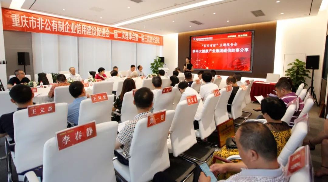 信用渝商,法治民企。7月19日下午,重庆市非公有制企业信用建设促进会一届二次理事会暨一届三次会长会议在彭学平执行会长单位学平大健康产业集团圆满召开。会议紧紧围绕重庆市工商联商会信用建设试点工作启动会暨重庆市非公有制企业信用建设促进会授牌仪式的精神和要求,对促进会信用建设试点工作作出全面动员和部署,努力推动试点工作达到“规定动作‘高标准’”和“自创动作‘有特色’”。