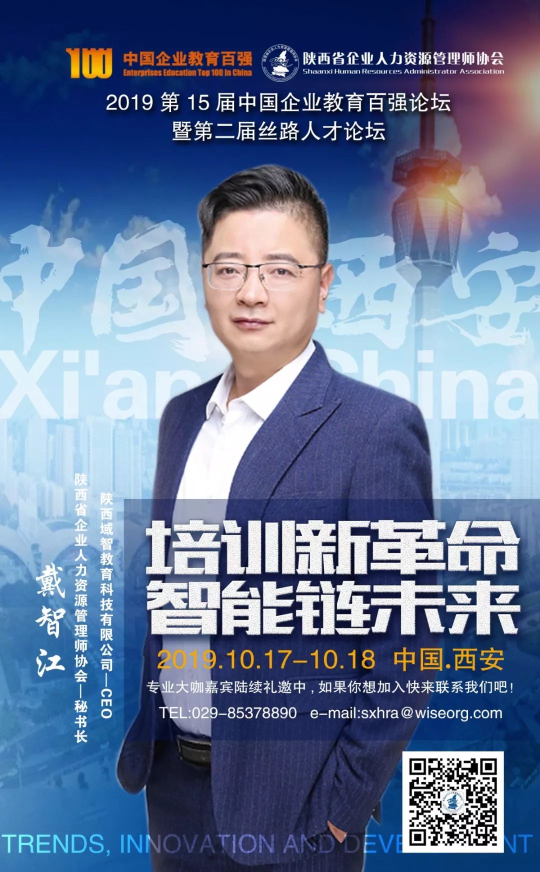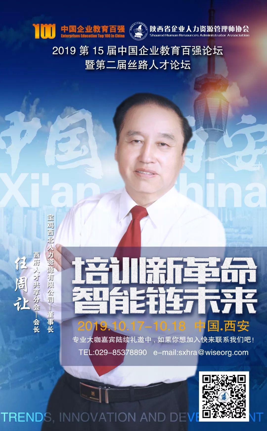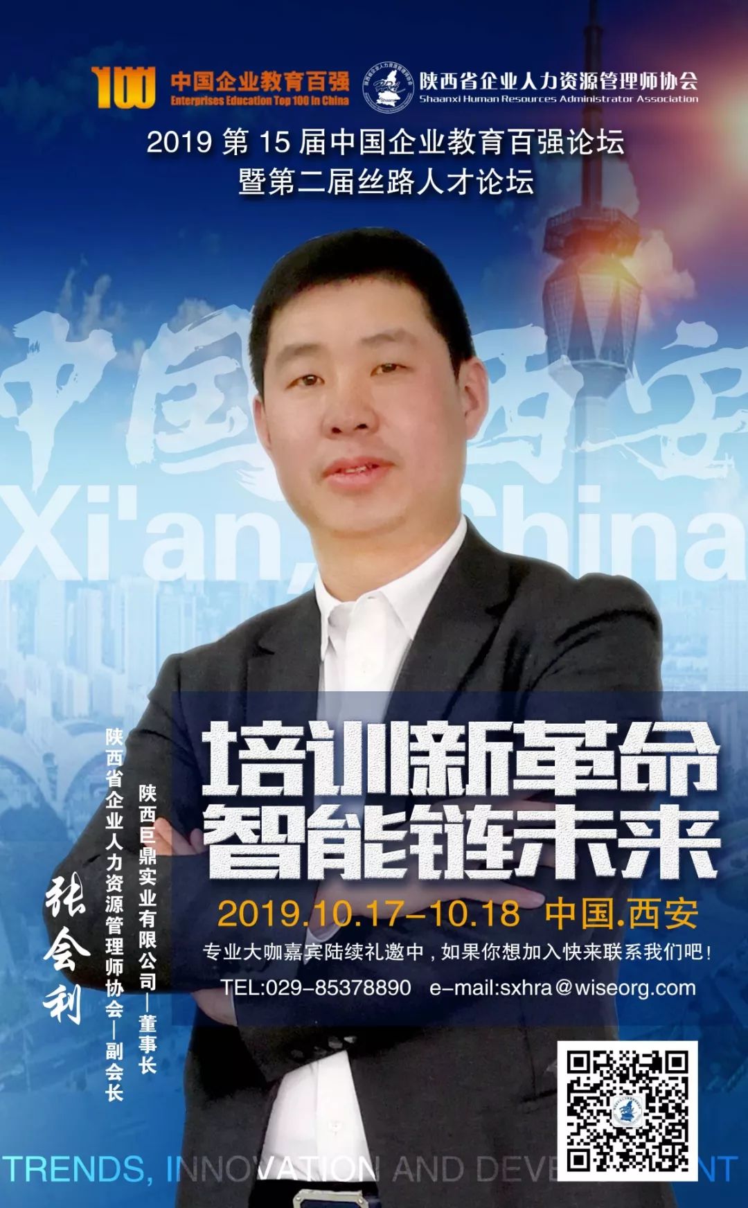 被誉为中国企业培训界的奥斯卡、福布斯和风向标的第15届中国企业教育百强论坛将于2019年10月17日-18日在西安索菲特人民大厦举办,由陕西省企业人力资源管理师协会承办。15年来每届论坛均以前瞻的主题、高层次的演讲嘉宾和丰硕的成果,赢得了业界的一致关注与认可。