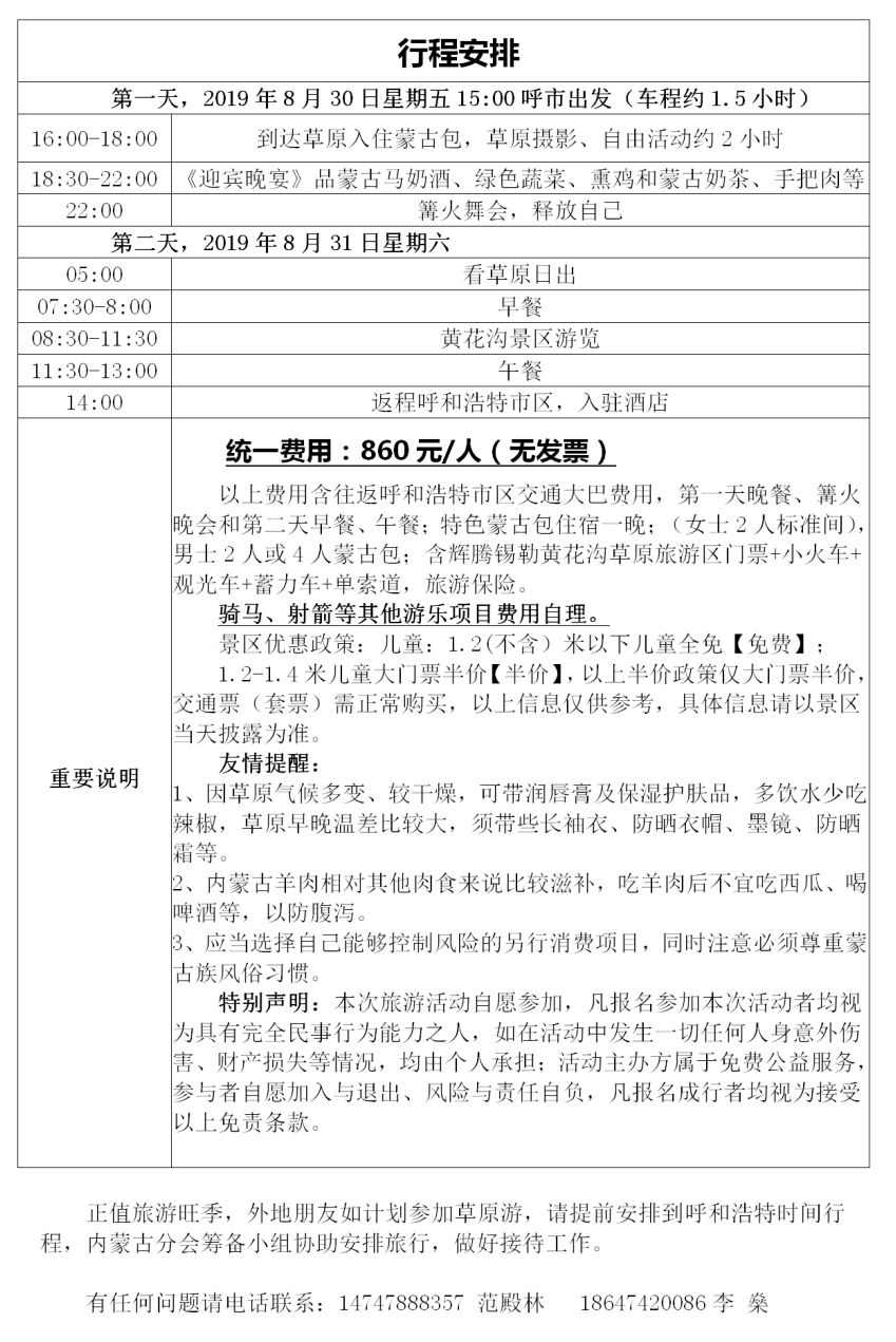醉美草原一日游 |【8月30日-31日】中国HRD俱乐部“醉美草原一日游”行程计划