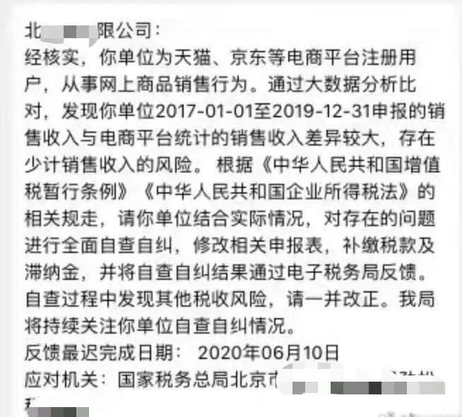 具体来说指天猫、京东等电商平台开设网店的企业,其向税务部门申报的销售收入与电商平台所统计的销售收入差异较大,需要补缴营收差额所产生的增值税与企业所得税。网店商家要自查3年以来的营收漏报风险,并补缴相应税款。