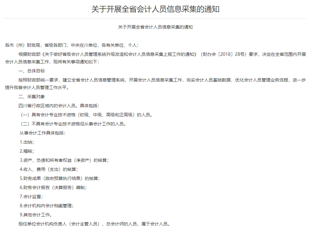 更严重的是,注意到有些地区规定,如果没有在规定年限内完成信息采集,将被视作非会计人员,例如四川发布的《关于开展全省会计人员信息采集的通知》里强调,2020年12月31日前,未完成信息更新完善的人员,将被视为非会计人员,系统中原有的信息将做删除处理。