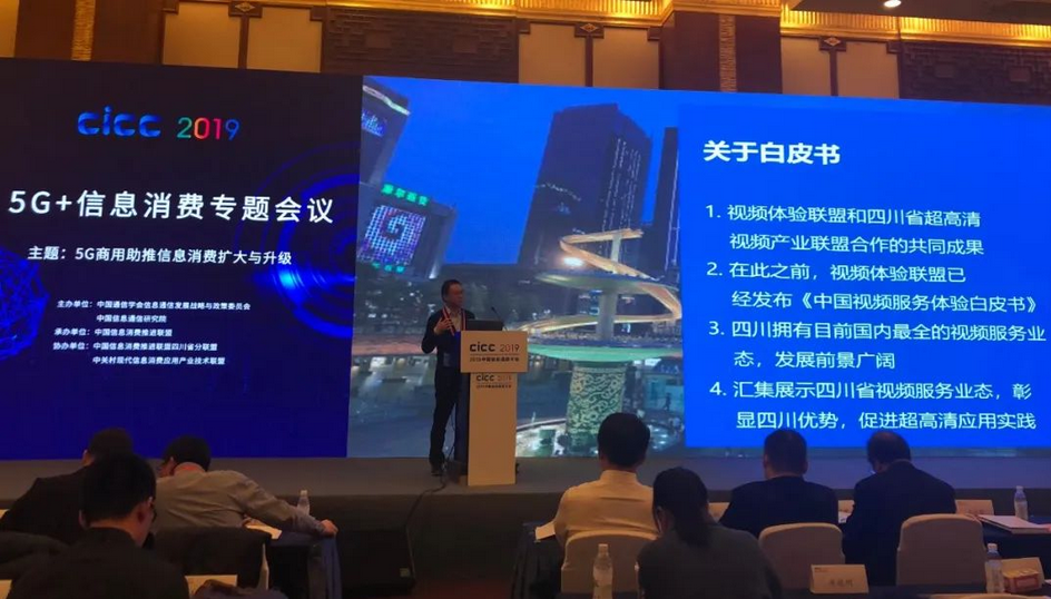 在5G+信息消费专题会议上,四川省超高清视频产业联盟秘书长宋小民做了《中国视频服务体验白皮书(四川分册)》工作报告。