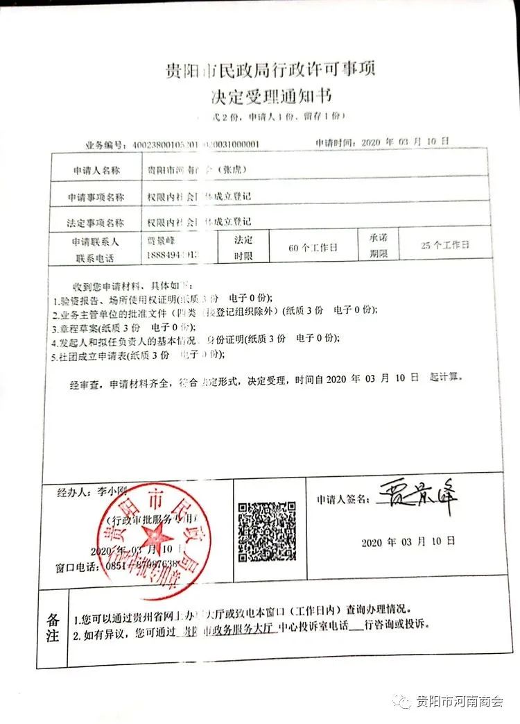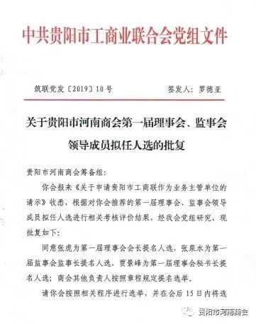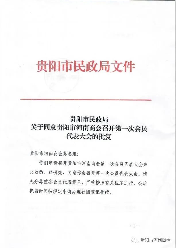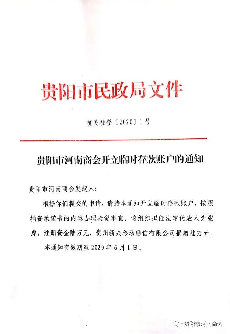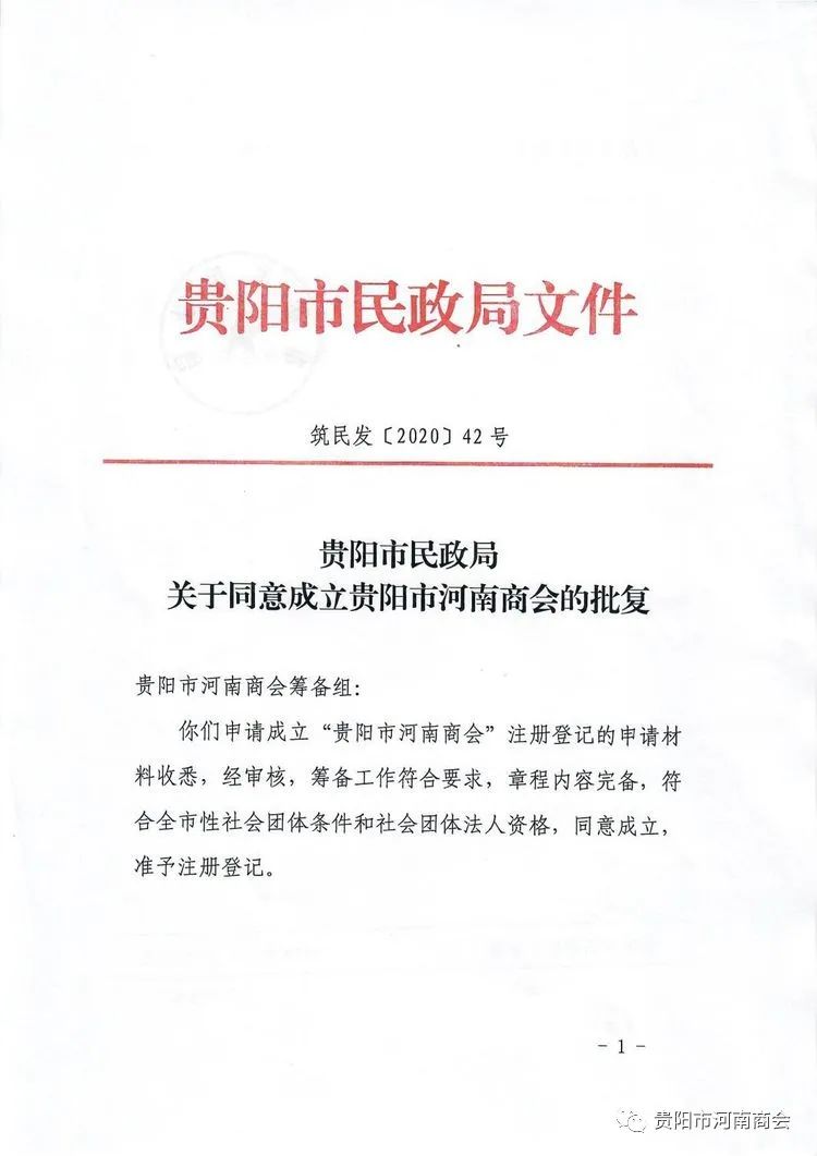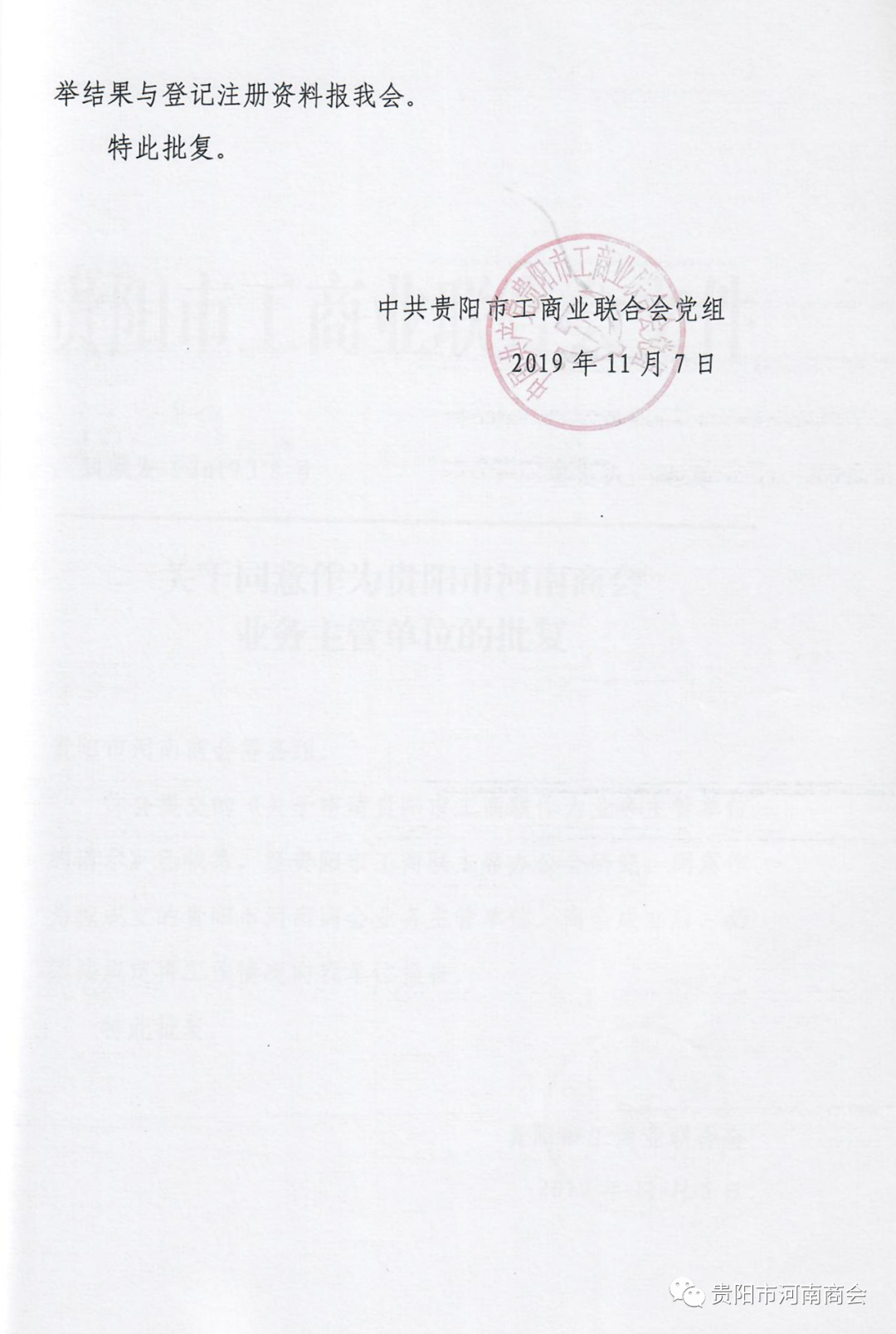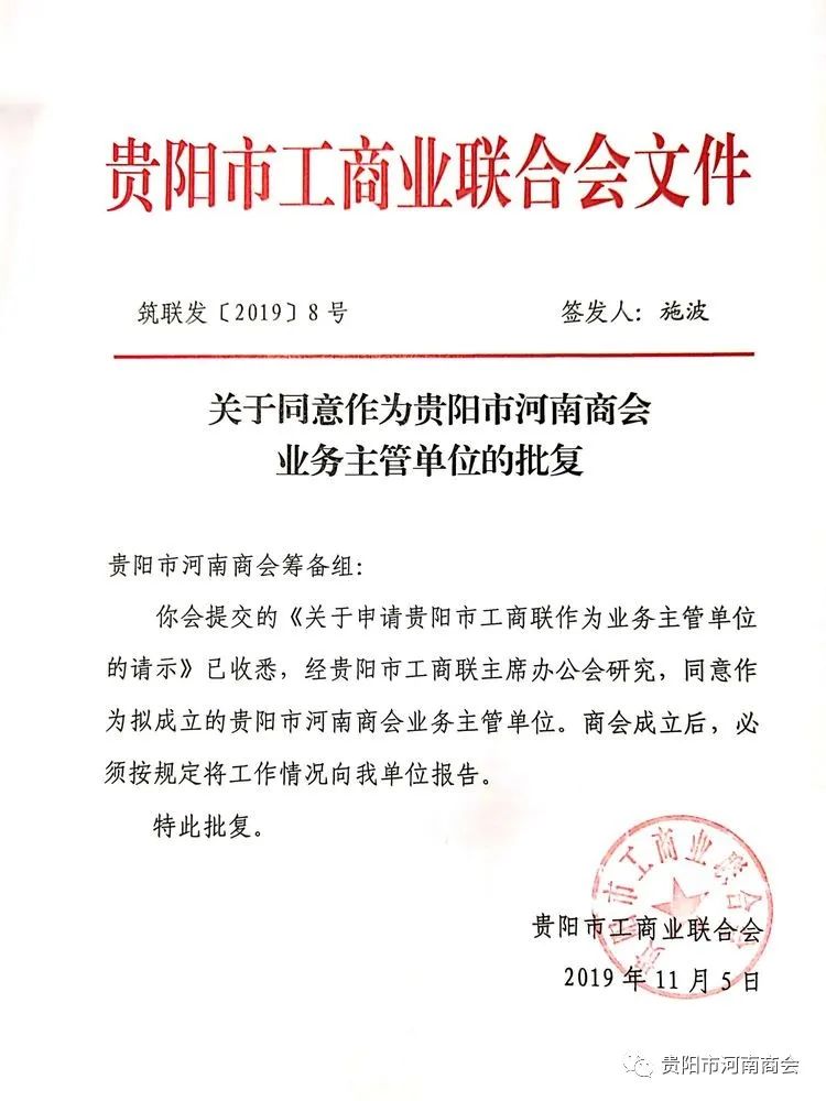 2019年5月15日,贵阳市民政局审核通过贵阳市河南商会名称