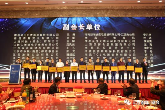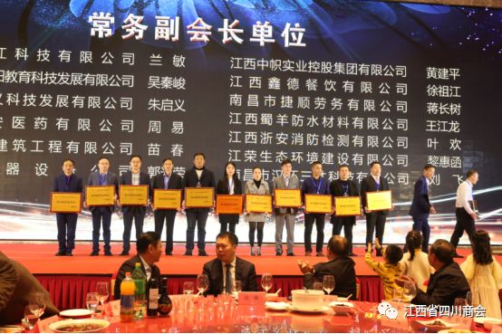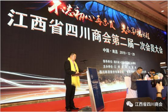2019年12月29日,江西省四川商会第二届一次会员大会在南昌喜来登酒店隆重举行。四川省经合局二级巡视员张树华、四川省人民政府驻厦门办事处主任徐群、四川省人民政府驻厦门办事处副主任陈鹏、江西省社会组织党委副书记兼办公室主任王永、江西省社会组织管理局主任科员陈美秀、江西省商务厅厅直属机关党委副书记徐芳、江西省商务厅厅直属机关党委主任科员冯留春、江西省工商联党组成员秘书长谢松岳,江西省工商联党组成员办公室副主任袁松柏出席大会。各地四川商会会员代表和嘉宾等两百多人出席会议。