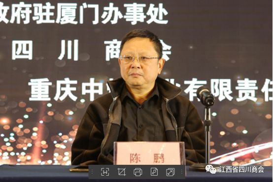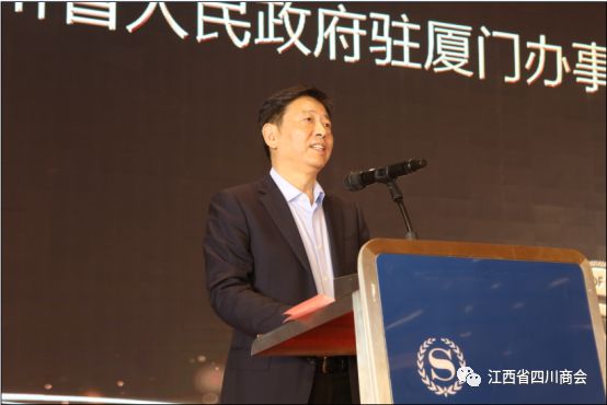 四川省人民政府驻厦门办事处副主任陈鹏讲话,希望商会坚持服务会员的初心,团结全体会员同心追梦,“不忘初心再出发,矢志笃行启新程”,为赣川两地经济社会高质量发展助力,在实现高质量发展中再创新高。