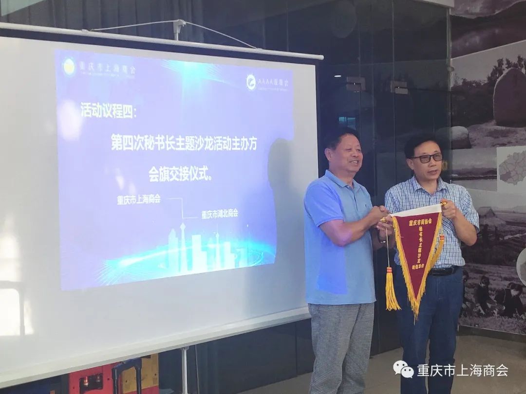 最后,举行了“重庆市商协会秘书长主题沙龙交旗仪式”,重庆市湖北商会秘书长王双泉从本次活动的主办方重庆市上海商会秘书长姚庆伟手中接过轮值旗帜,分享了湖北商会在这次疫情过程中的担当、做法和经验,并表示非常欢迎大家积极参与下一次的沙龙活动,力争把活动办好办实。