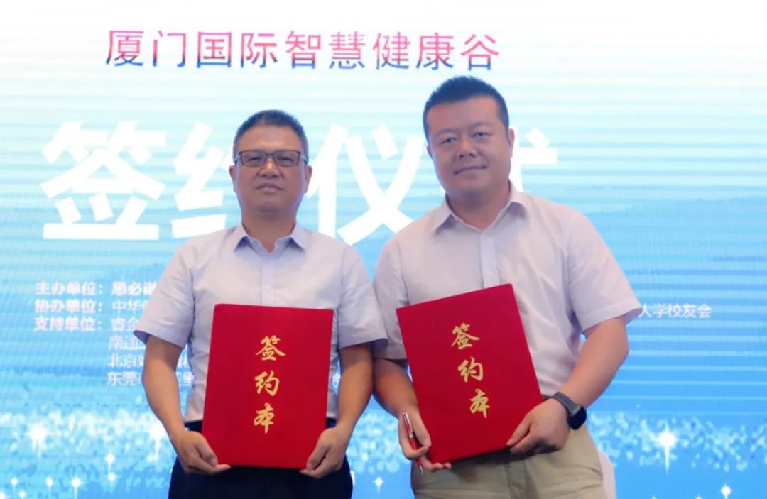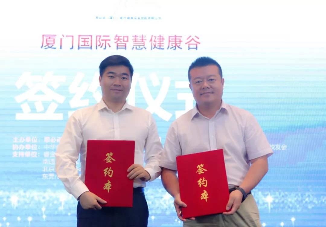 随后,福州大学统战部副部长、福州大学校友总会秘书长游生辉向厦门国际智慧健康谷授牌,北京泓信干细胞生物科技有限公司、北京好欣晴移动医疗科技有限公司等企业负责人先后上台与主办方签署战略合作协议。