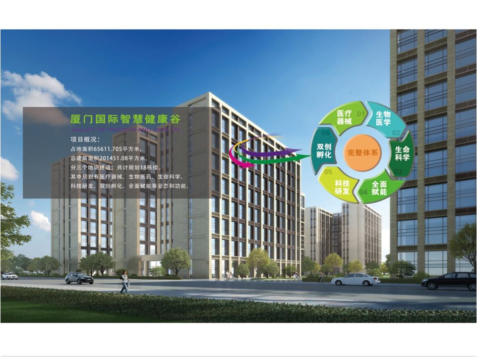 厦门国际智慧健康谷以科学技术为核心,打造服务于人类生命质量和身心健康的系统工程平台;在共享经济的社会环境下,实现医养产业联动来造福人类的远大目标;为医疗类或健康高科技企业提供孵化和加速功能及赋能作用,通过科研部门技术成果转化、在线医疗发展等业务提高产业的高附加值。