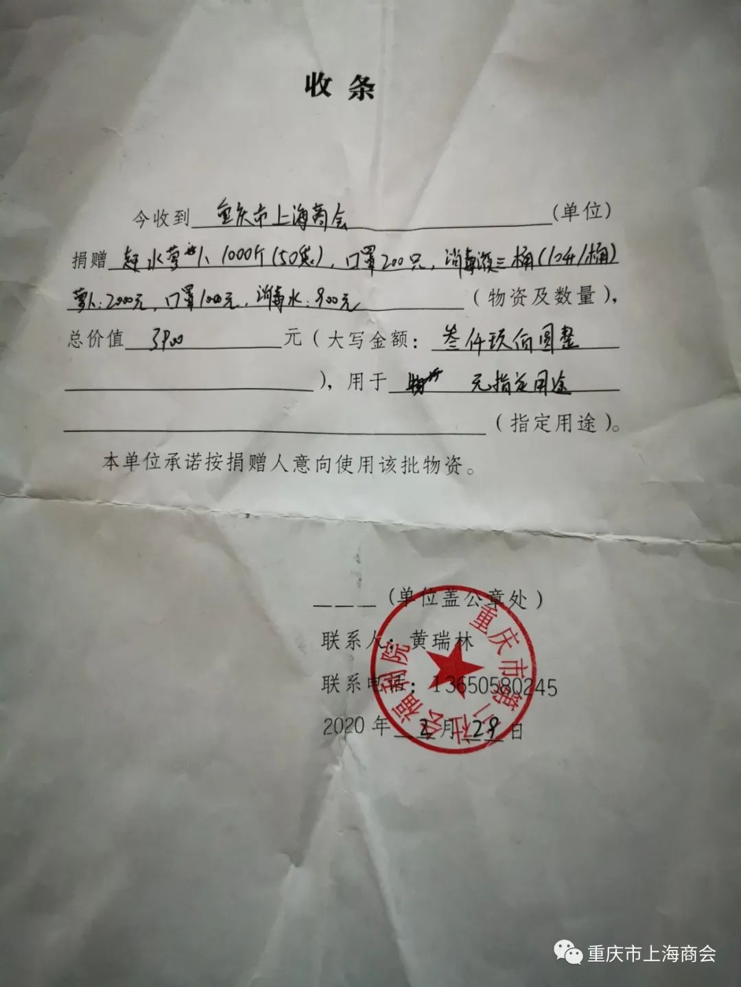 捐赠过程中,每到一个福利院,商会会长韦根及会员企业家都不辞辛苦亲自装卸援助物资,运送到福利院门口。当一箱箱、一件件爱心物资运抵后,市福利院三位院长对重庆市上海商会的伸援手、献爱心的捐献举动表示衷心的感谢!院长们表示,在重庆市上海商会爱心捐助下,更加坚定了福利院打赢这场疫情阻击战的信心!