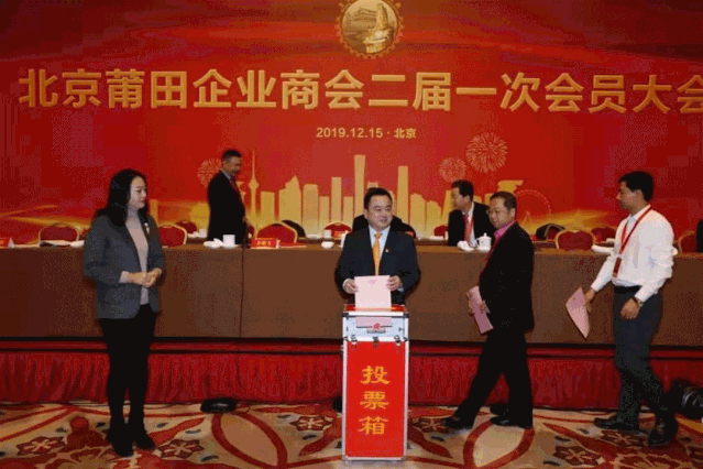 2019年12月15日,北京莆田企业商会二届一次会员大会在北京会议中心顺利举行。大会投票选举产生了商会新一届理监事会领导成员,北京市第十二届政协委员、北京市怀柔区政协常委、北京市怀柔区工商联副主席、北京硕泽商业集团董事长黄文盛全票当选,连任商会新一届理事会会长。和美医疗控股有限公司董事局主席林玉明全票当选,连任商会新一届监事会监事长。北京中图能源集团有限公司董事长张志勇全票当选,连任商会新一届理事会秘书长。