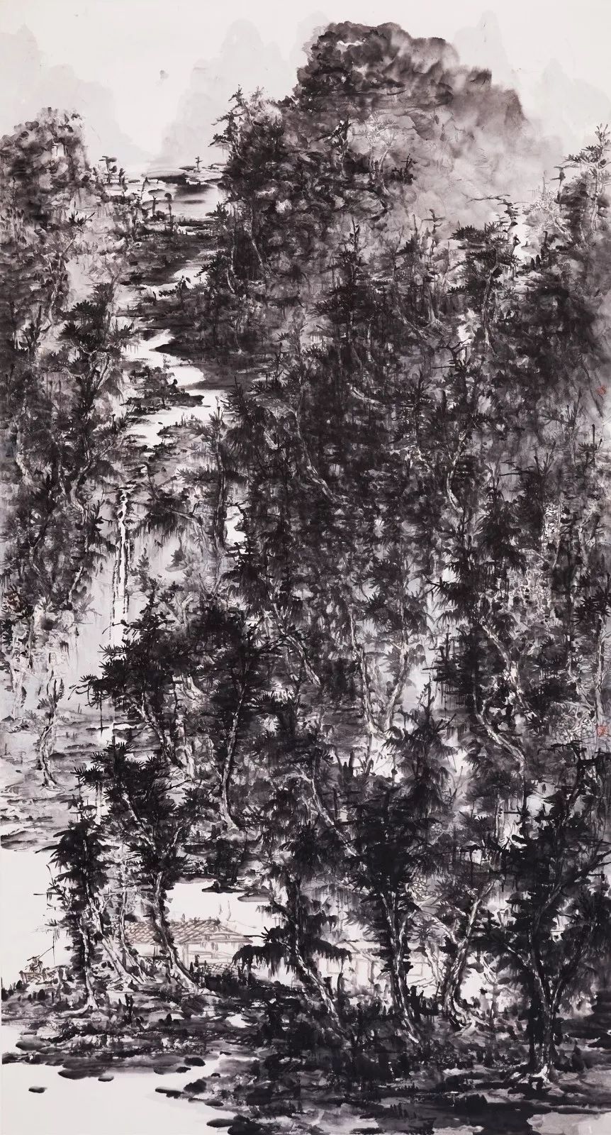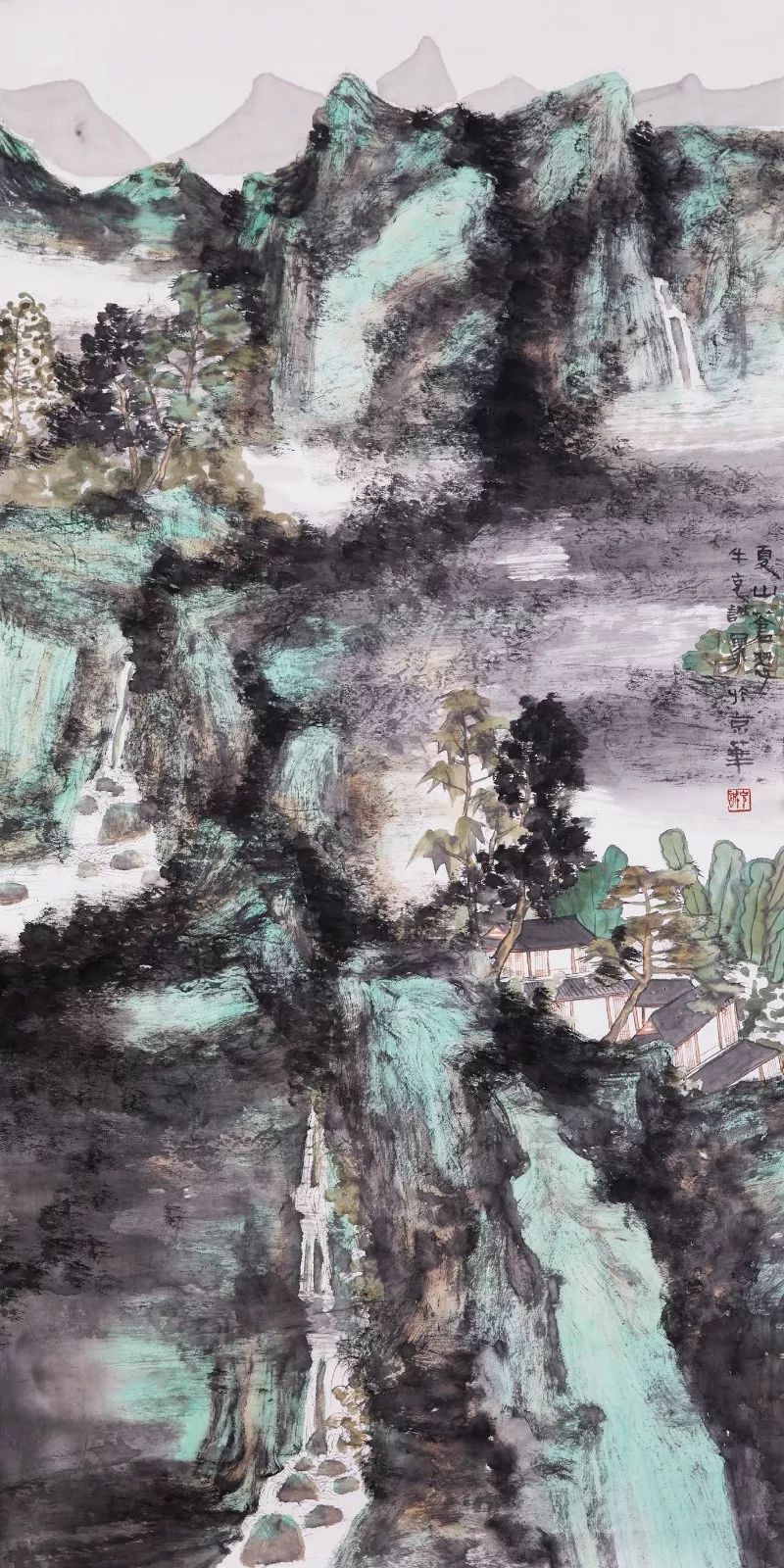 璧山烟云 纸本设色 168cm*55cm 牛朝