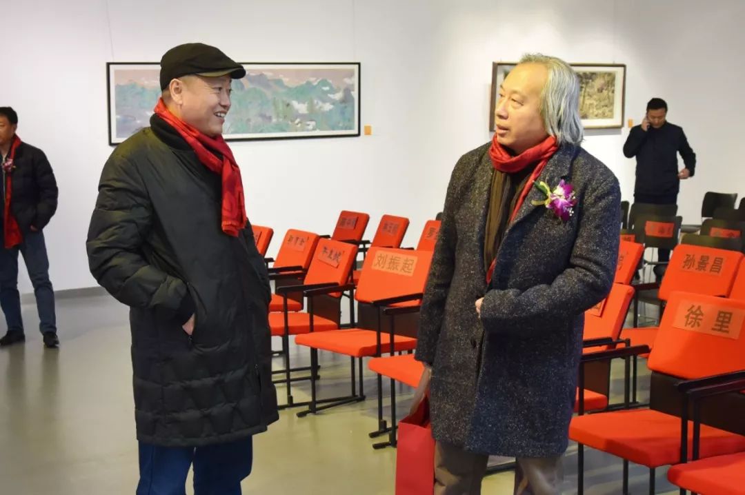 ▲(左)北京画院专职画家牛朝与(右)中国艺术研究院美术研究所所长牛克诚进行艺术交流