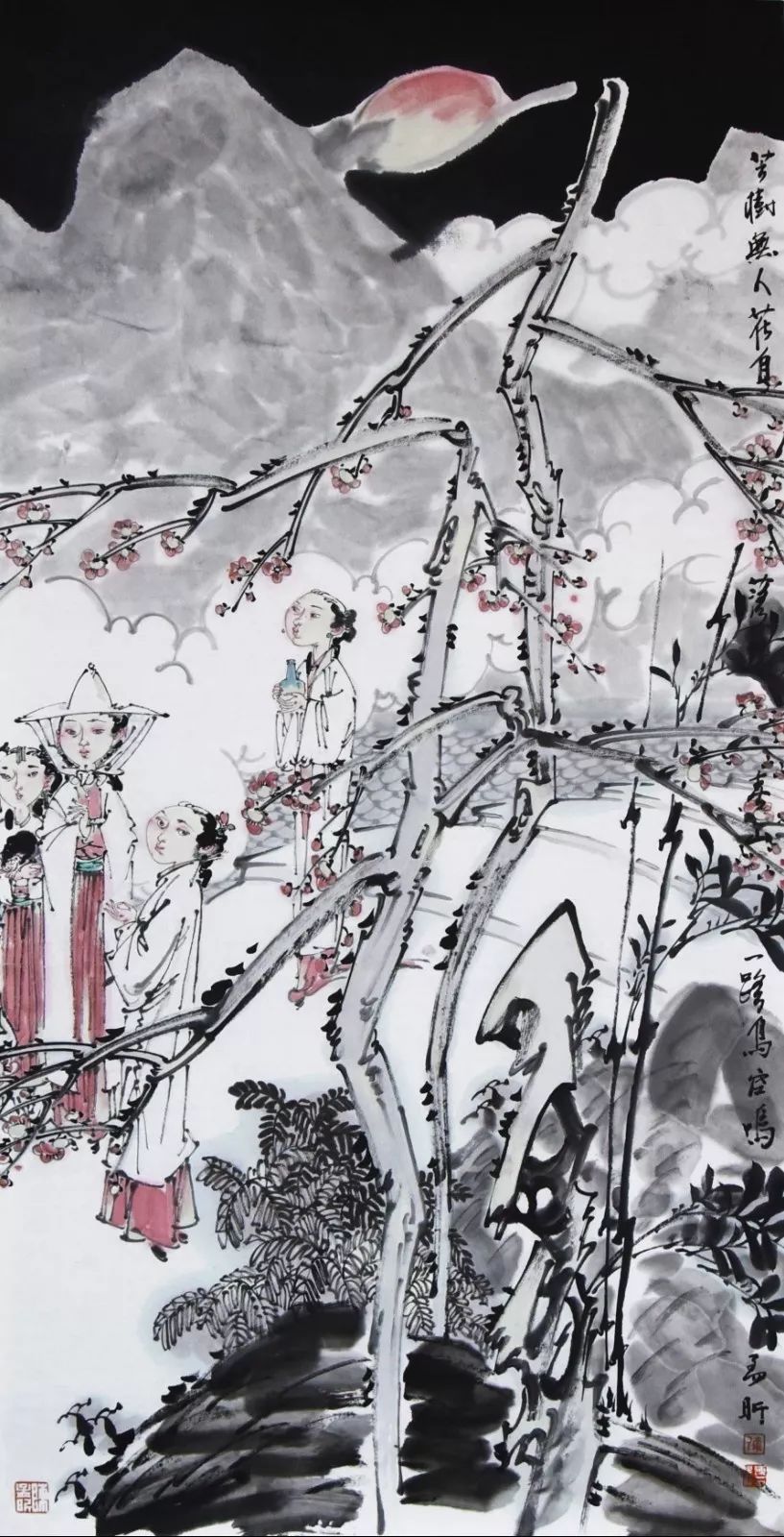 2019年 花自落 纸本设色 69cm*138cm 陈孟昕