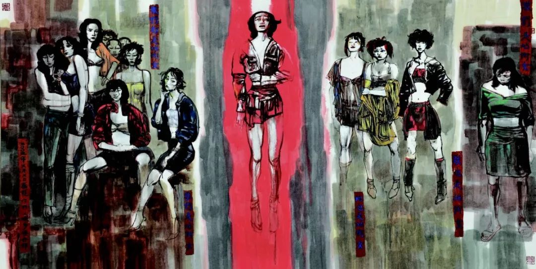 1991年 站街女 纸本设色 120cm*240cm 秦龙