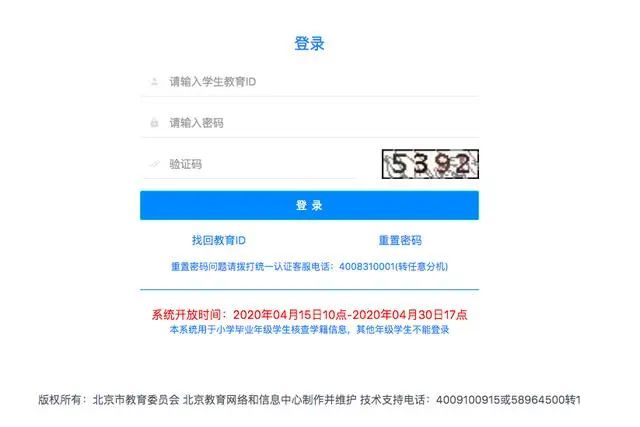 自4月17日起至30日,北京市小学生毕业学籍信息核查平台(http://www.xscmis.bjedu.cn/)正式开通,家长可登录网站核查小升初入学信息,账号及密码为学生教育ID及密码。
