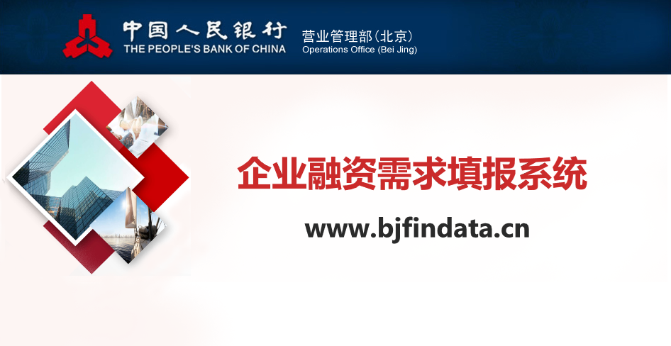 近期,中国人民银行营业管理部进一步优化升级北京市银企对接系统,正式上线“企业融资需求填报系统”(www.bjfindata.cn),为广大企业特别是中小微企业提供了一个自主填报融资需求、主动接受银行走访对接的渠道。