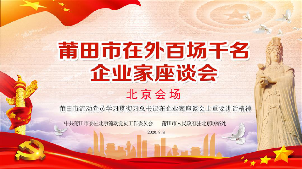 8月8日,莆田市在外百场千名企业家座谈会(北京会场)在京召开。会议传达学习了习近平总书记在企业家座谈会上的重要讲话精神,与会人员结合自身实际就学习贯彻习近平总书记的重要讲话精神畅谈感想体会,向广大莆籍企业家发起“弘扬企业家精神、争当新时代楷模”倡议。商会永远荣誉会长陈春玖,名誉会长张志雄、谢冬通,执行会长郑国辉、傅占鹉、林华东,党总支副书记朱金建,党总支专职副书记兼常务副会长林彬,常务副会长黄金标、张新、卓清山、郑志坚、林元太等出席会议。