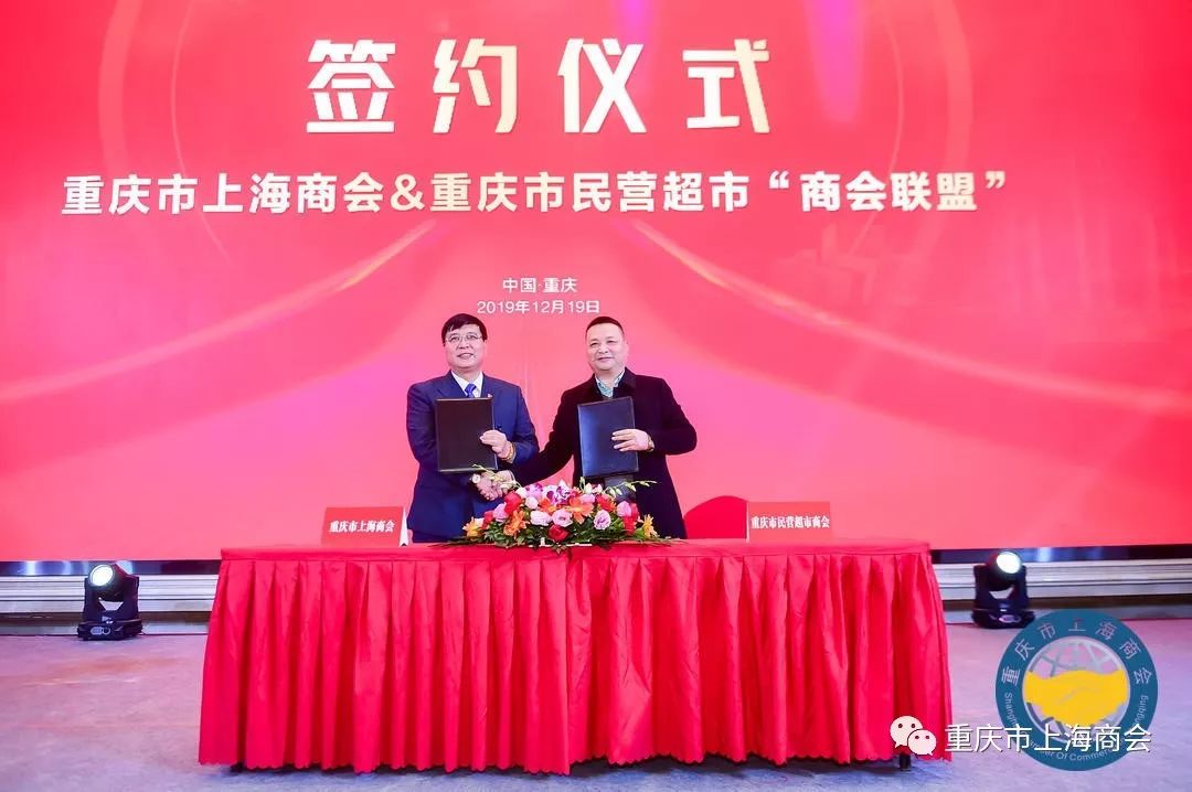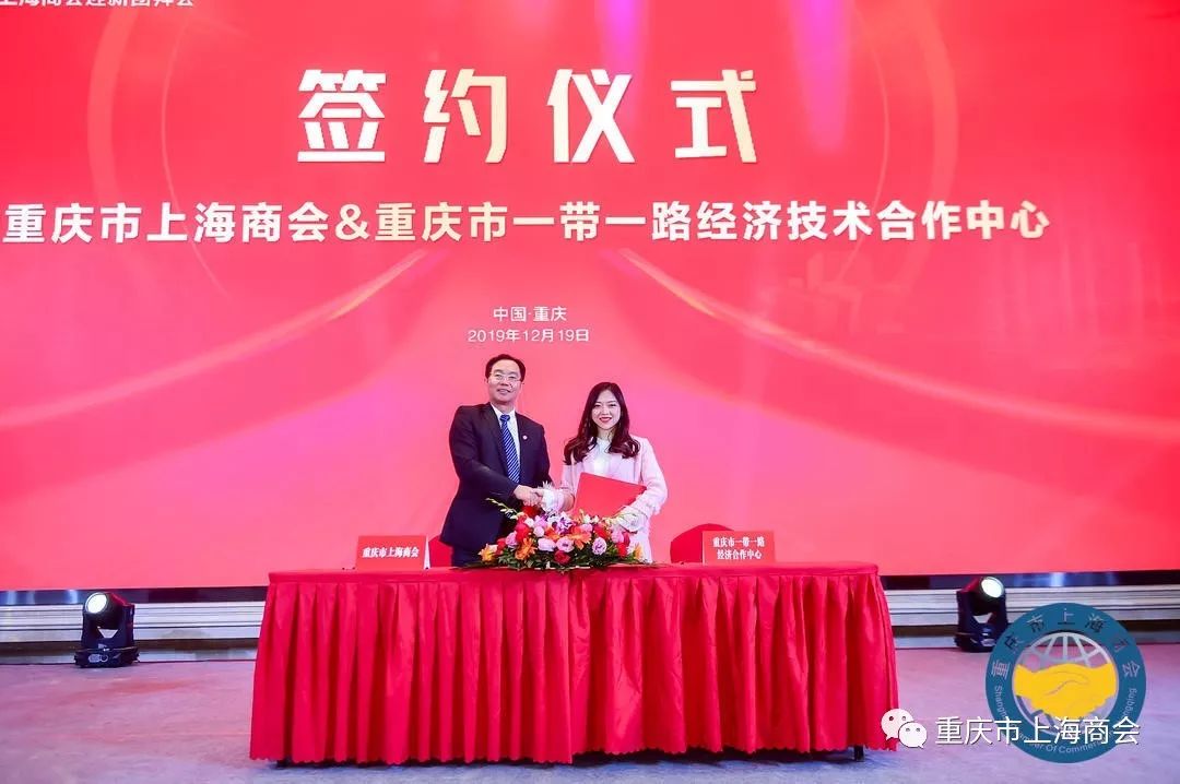 此外,团拜会还举行了重庆市上海商会与重庆市民营超市商会“商会联盟”签约仪式及重庆市上海商会与重庆市一带一路经济技术合作中心“战略合作协议”签约仪式,分别由重庆市上海商会会长韦根与重庆市民营超市商会会长康建银,重庆市上海商会执行会长彭广泽与重庆市一带一路经济技术合作中心副主任、一带一路门户网文化推广大使曾诗迪上台签约,签约仪式助推了双方优势互补、资源共享,并积极引导会员企业走向海外,寻找更多发展机遇。