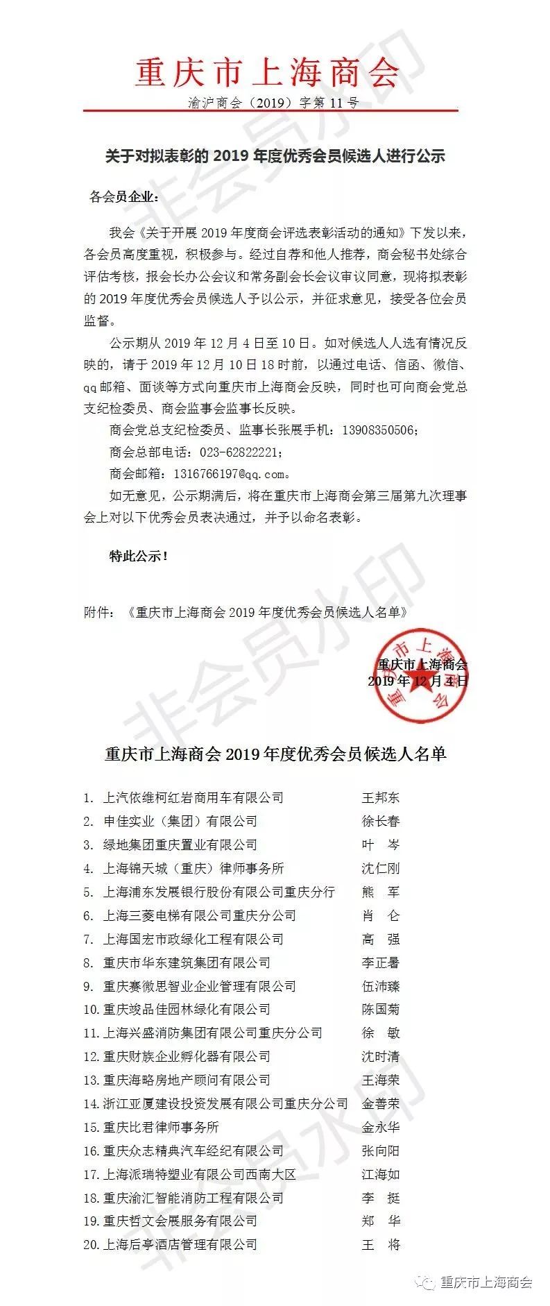 关于对拟表彰的2019年度优秀会员候选人进行公示
