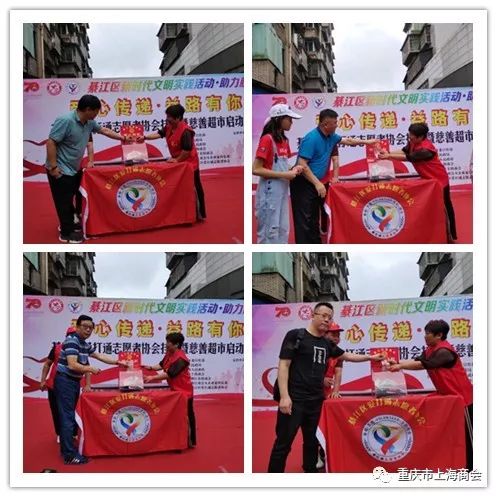 7月13日上午,綦江区打通镇隆重举行“爱心慈善超市”启动仪式。綦江区委宣传部领导、打通镇镇长陈安明;重庆市上海商会会长韦根、商会常务副会长徐长春、商会会员企业郑华、商会秘书长姚庆伟;重庆市浙江东阳商会会长韦秀萍,以及打通镇志愿服务队和打通镇市民代表等120人参加了此次活动。