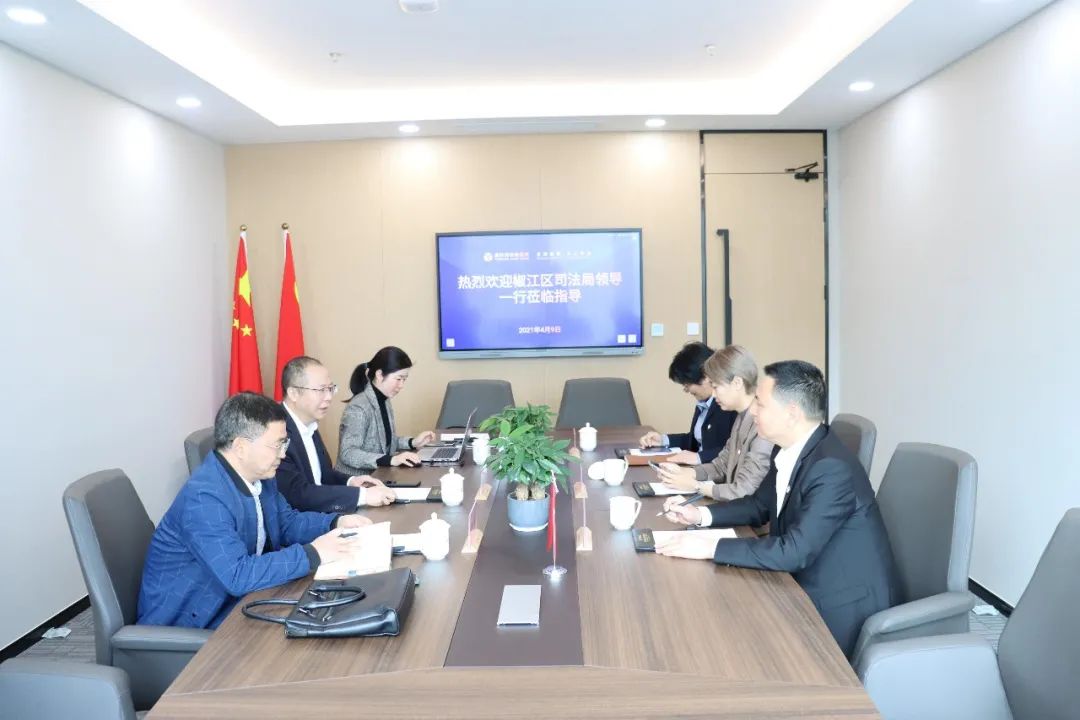 2021年4月9日上午,椒江区司法局局长姚宁武、副局长蒋先章、律师工作科科长施赛眉等领导一行莅临北京盈科(台州)律师事务所(以下简称盈科台州分所)进行调研指导。盈科台州分所执行主任白云,大部门主任方年锁、李梦欣进行了热情接待。