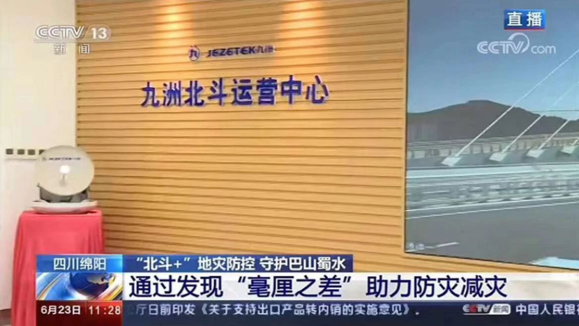 中央电视台新闻频道在直播中用5分钟的时间重点呈现了九洲集团,报道九洲”北斗+地灾防控”运用。