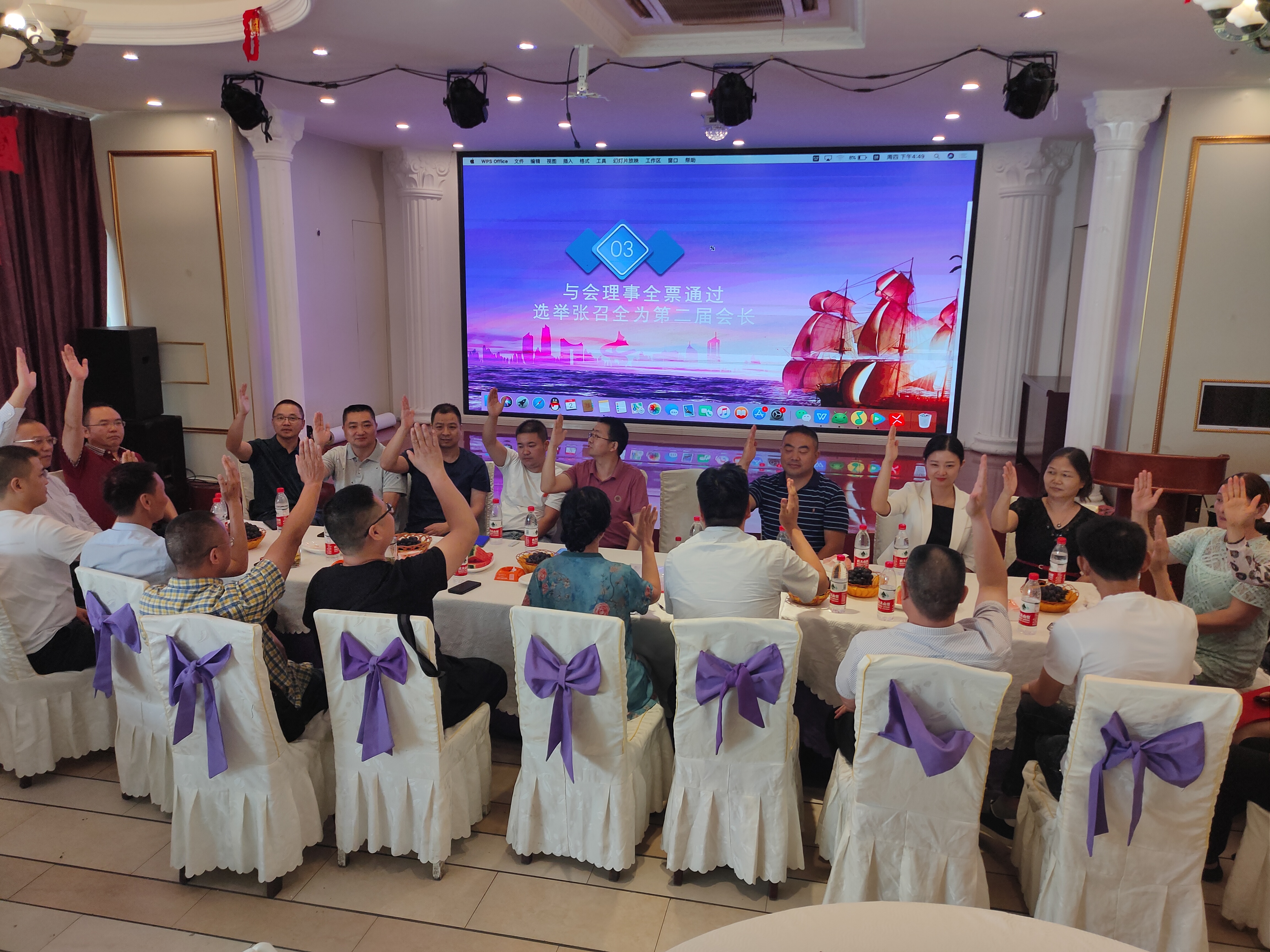 四川省重庆商会南川分会是南川人在成都发展的企业家组成的民间组织和社会团体,相对松散,作为核心的会长十分重要。张召全会长通过近4年的履职,他不但热爱商会事业和热心商会工作,而且还乐于奉献和担当。经7月2日到会理事全票通过张召全为第二届会长;全票通过朱玉阳、韦波、陈科友为第二届执行会长;全票通过陈勇、向仲生、周华、张学明为第二届常务副会长;全票通过宋义苹、曾敏、丁立伦、殷立勇、陈仕伟、封波、谈剑波、朱江陵、杨山、陈红玲、韦济元、李昌俊、石洪、梁正强、汪太林、刘渝川、游江、任波、程力、程永华为副会长;全票通过刘川庆、谭华溶为第二届理事;推荐宋义苹和殷立勇分别为第二届秘书长和监事。同时修订商会章程第五条本会住所为:成都武侯区天府大道北段1700号(环球中心E2-1001);补充商会章程第十五条的内容:(1)凡新入会的会员单位,按商会章程规定的会费标准缴纳;(2)凡第二年和第三年的会员单位,按商会章程规定的会费标准的50%缴纳;(3)凡连续缴费三年以上的会员单位,按商会章程规定的会费标准的10%缴纳。