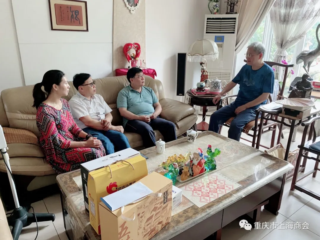 2020年6月22日,在一年一度的端午佳节即将到来之际,重庆市上海商会会长韦根率领商会秘书长姚庆伟、商会副会长、妇委会主任伍沛臻、党务秘书陈妍前往原重庆市老领导、商会顾问金烈和程贻举家中拜访,向他们送去全体会员诚挚的节日问候和“侬好侬好”的乡音祝福!