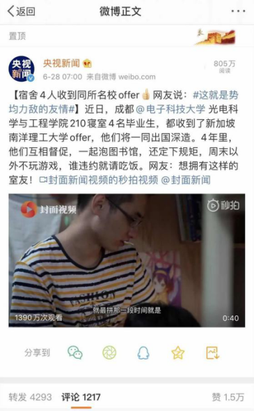 要知道,朱广权老师连线的这个成电学霸宿舍,之前可是上过热搜的呢,相关话题阅读量超过2亿!