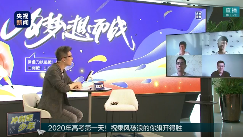 当被问到“要是一觉醒来,发现自己又要去高考,你会怎么办”时,四位男生同时被逗乐了。“高中学的知识都忘得差不多了,心里一定贼慌。之前也曾多次梦见高考,醒来后庆幸原是梦一场。”身着黑色衬衫的姬星宇带着谦和的笑容首先说道。“要是考语文那应该不行了,背诵的古诗词都忘了。要是考理科,至少我能有90%的把握。”一旁的徐家纯说。敦厚沉稳,带着圆框眼镜的古博臣接着道,“作文真的……好难呀!”仿佛对高考仍心有余悸。室长赵誉凯则更有底气:“刚写完毕业论文嘛,作文应该得到很大的提升才对。”在轻松欢快的气氛中,收看直播的网友们也纷纷发弹幕分享自己的高考记忆。