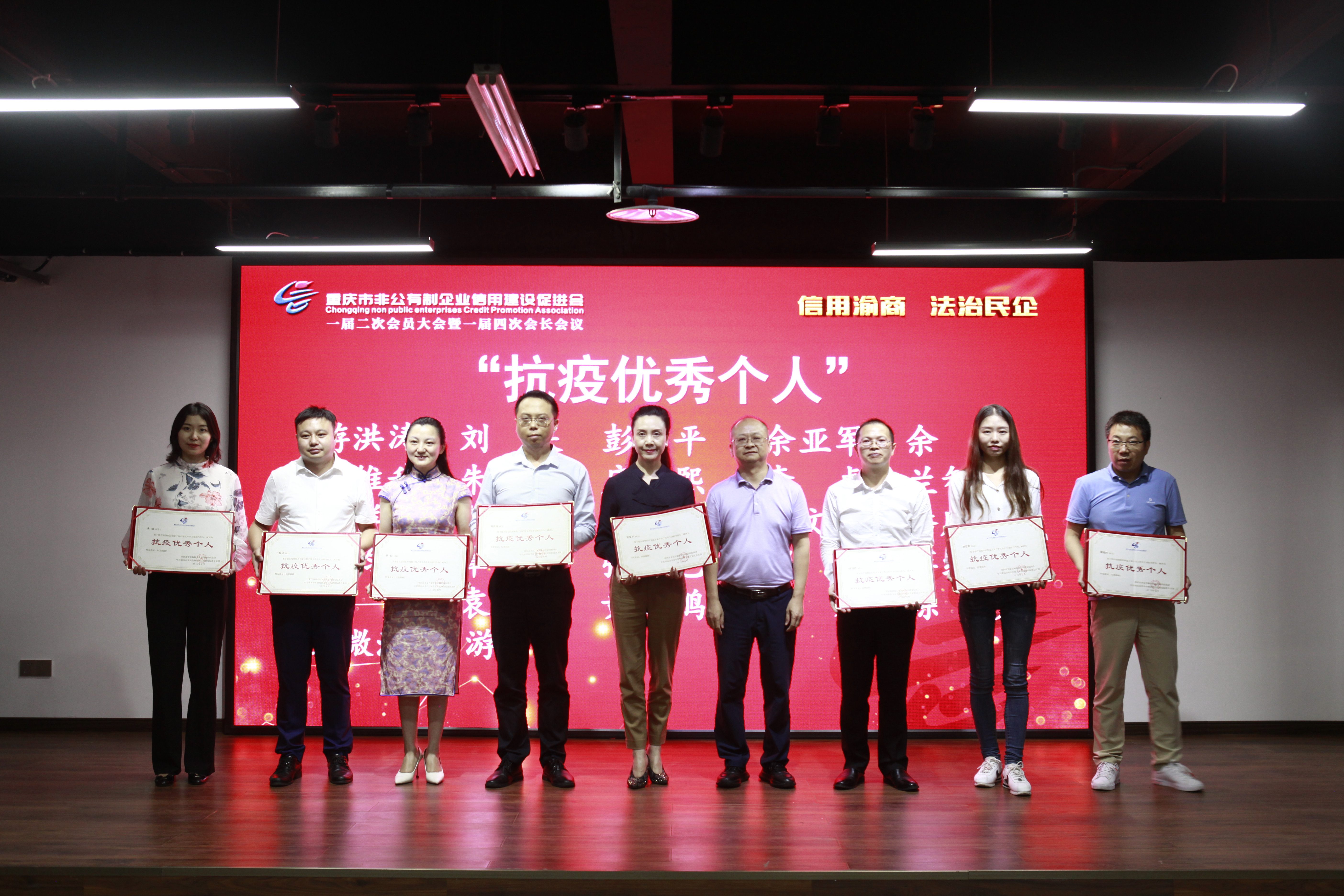 市工商联副主席王进向游洪涛、彭学平、余亚军、余斌、唐维升、蒋维胜、罗琼、兰智慧等代表颁发“抗疫优秀个人”证书