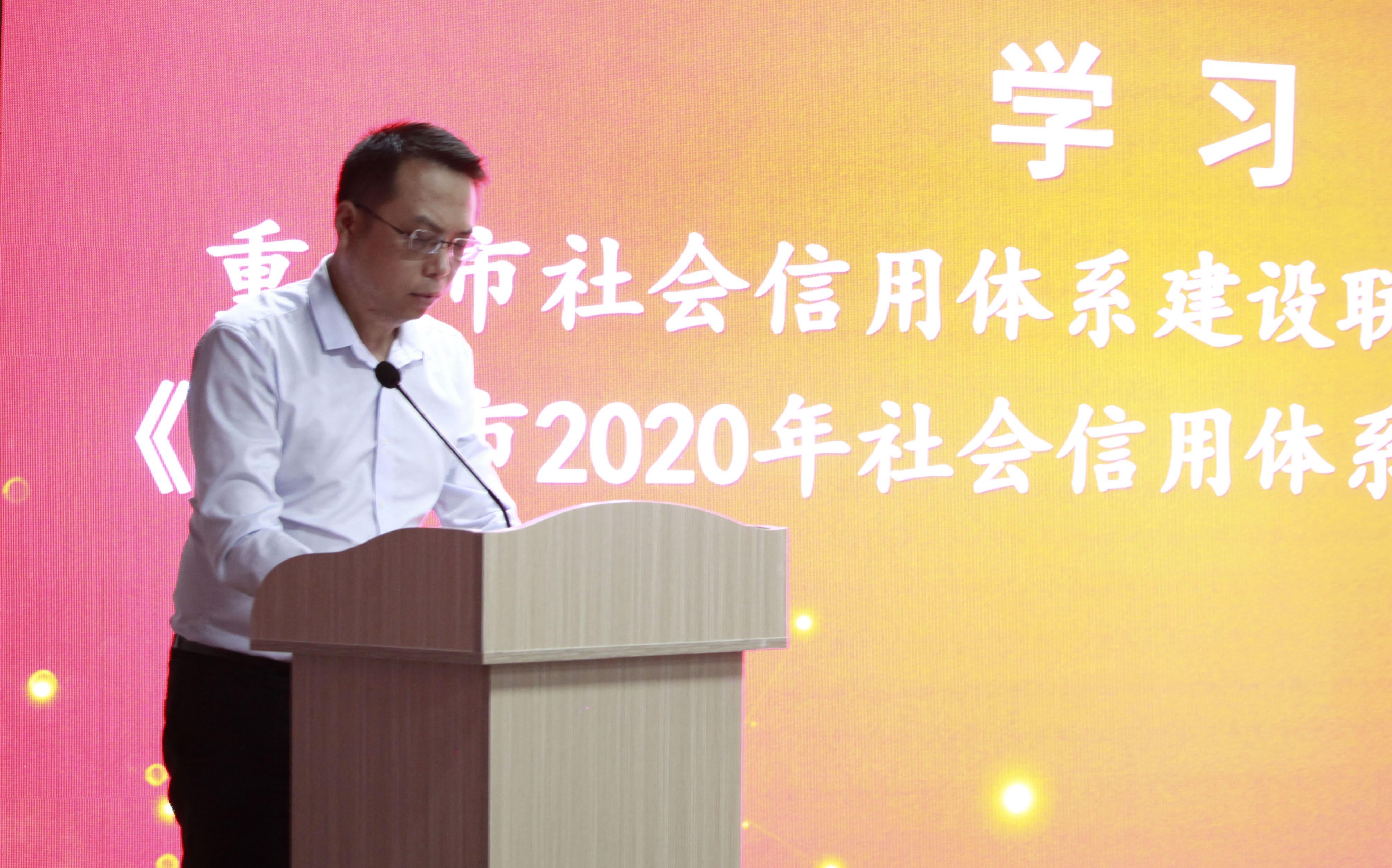 会长游洪涛的特别代表黄一男以《让守信有价、有用、有感》为题,组织学习贯彻重庆市社会信用体系建设联席会议办公室《重庆市2020年社会信用体系建设工作要点》精神。